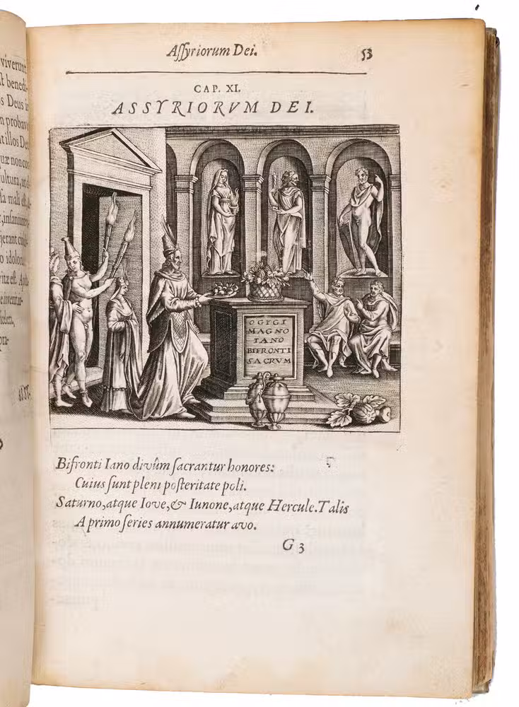 Very rare first edition of a beautifully illustrated emblem book depicting religious, profane, and mythological scenes, by Jean Jacques Boissard (1528-1602). Boissard was a French humanist, antiquarian, poet, and artist from Besançon, who settled in Metz in 1560 after many journeys and stays in Italy. From 1585 onwards, he was in contact with the well-known engraver, illustrator, and publisher Theodor de Bry (1528-1598) in Frankfurt am Main with whom he published the famous Icones virorum illustrium in 1597 (a collection of 100 portraits of important men). This work continued to be expanded in later editions, then known under the title Bibliotheca chalcographica.