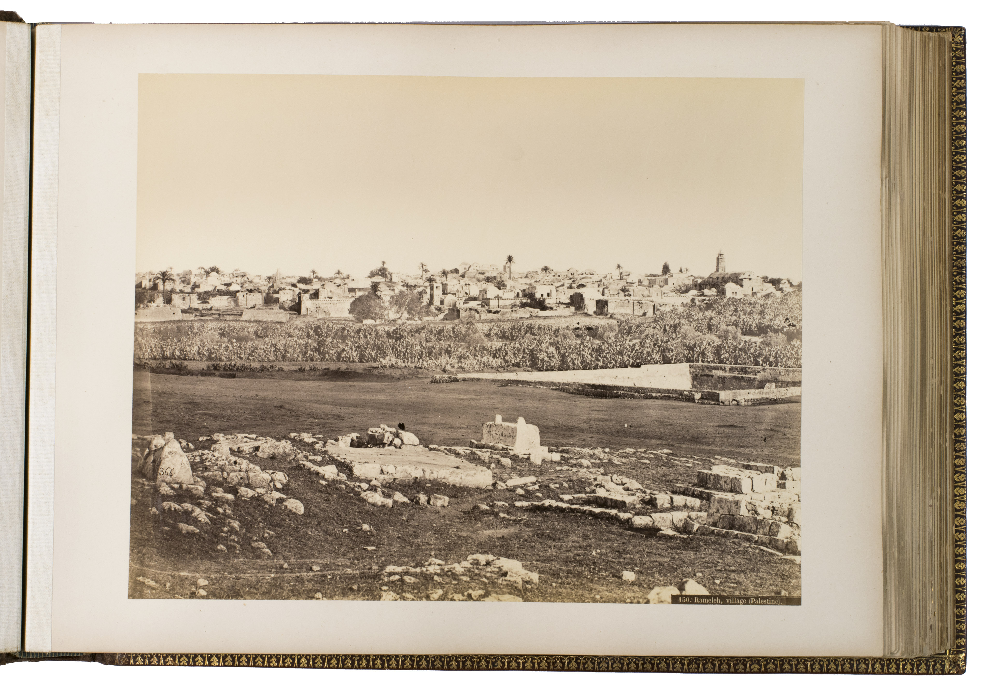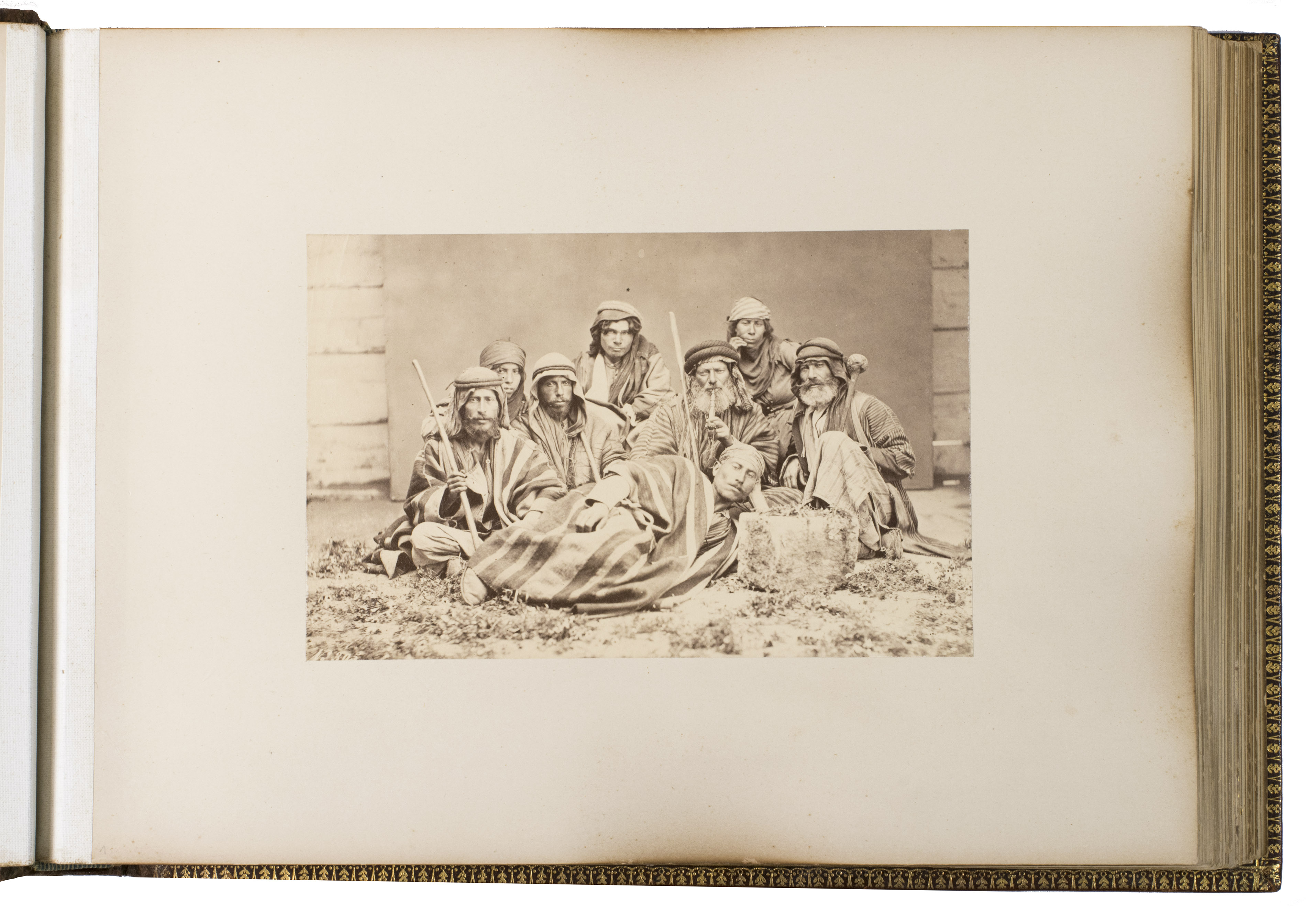 With a black bookseller's label mounted at the foot of the front pastedown (Philip, Son & Nephew, Liverpool), some of the photographs are captioned in ink underneath. The leaves are somewhat browned and the albumen prints are slightly yellowed. Otherwise in very good condition. Cf. El-Hage, B. Damascus, a photographic journey, 1840-1918, pp. 57-58; Hannavy, Encyclopedia of nineteenth-century photography, pp. 173-175.