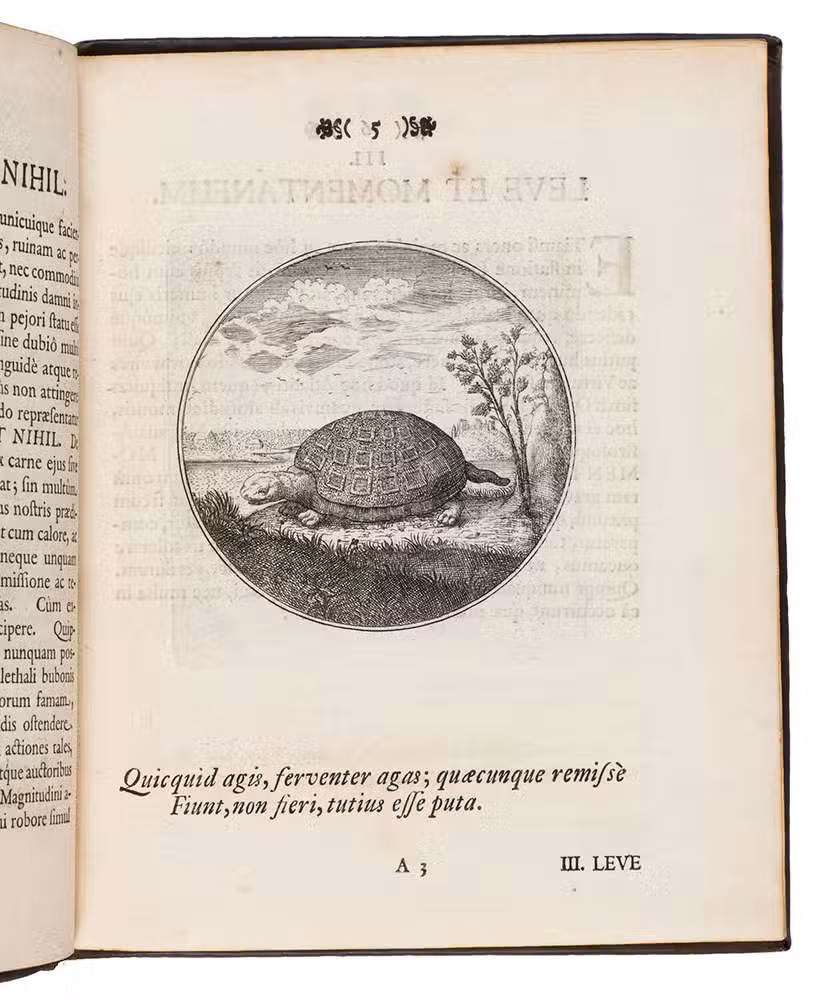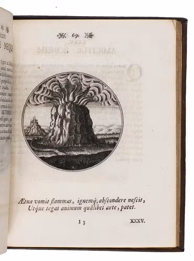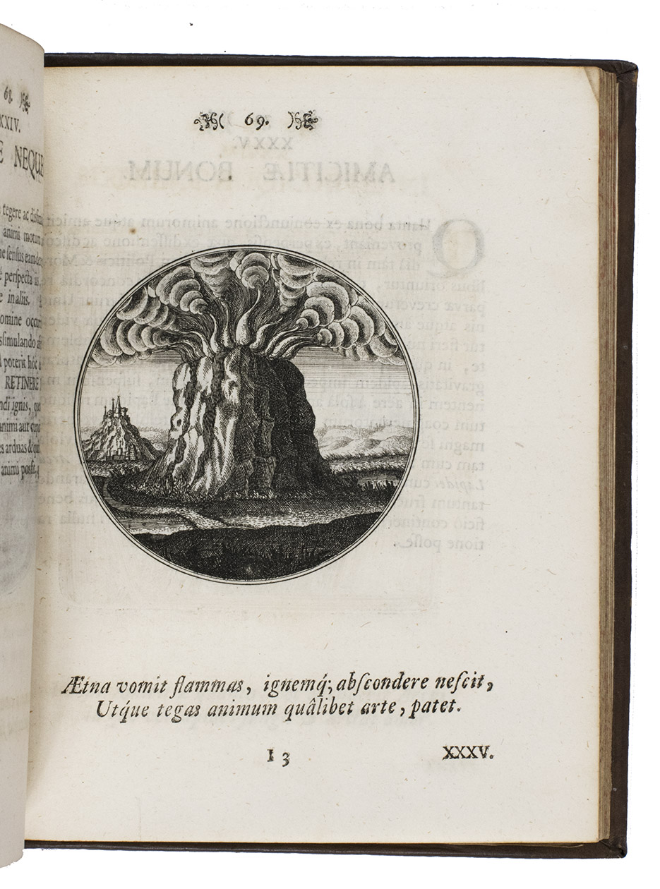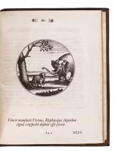 From the library of Andrew Fountaine (1676-1753), with his name stamped on an endleaf. A few leaves at the beginning and end browned, but otherwise in very good condition and with generous margins. Landwehr, German Emblem Books 137; Praz, pp. 281-282; VD 17, 1:059502E.
