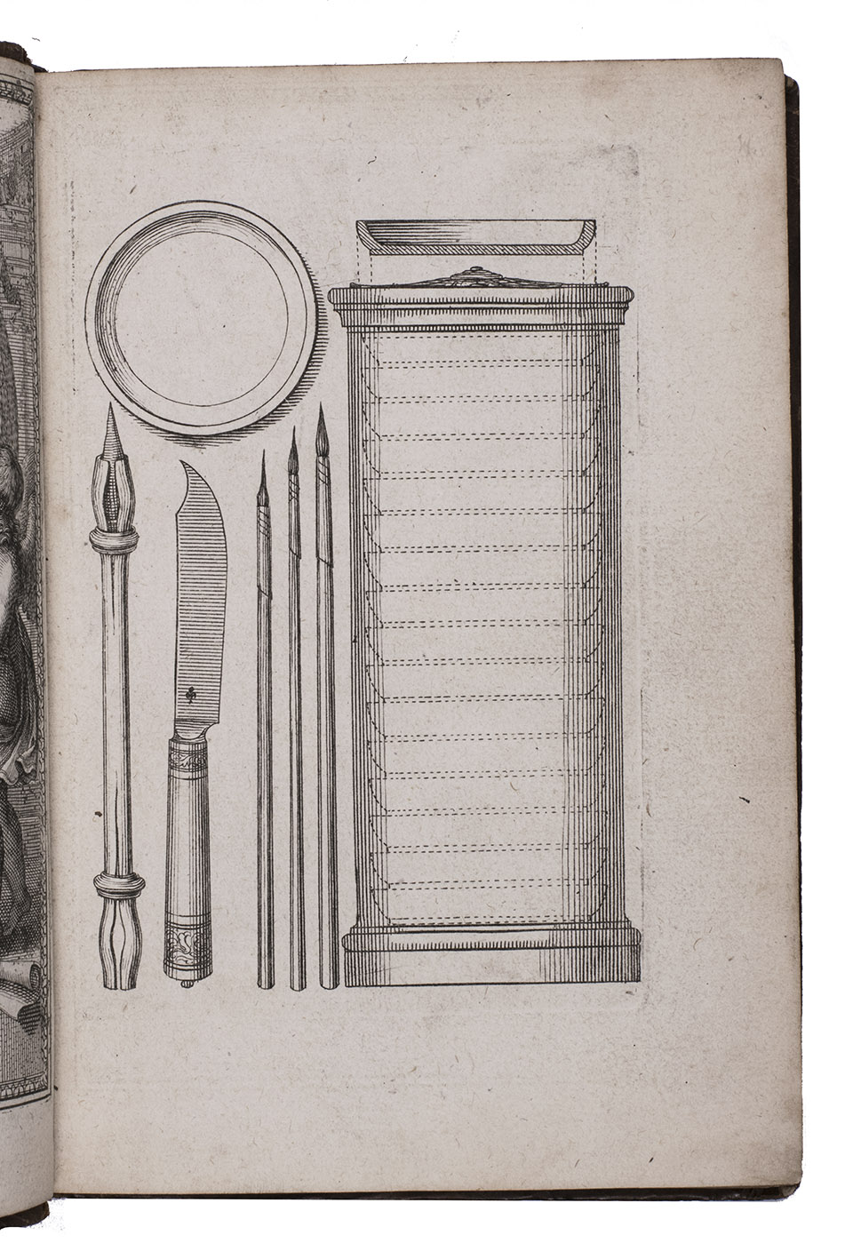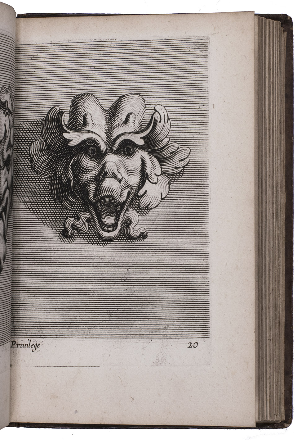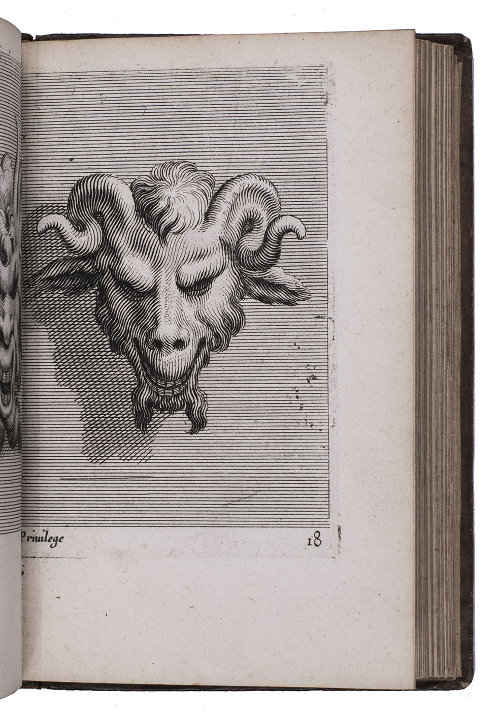 [Paris, N. Langlois, engraved 1688]. Complete suite of 11 double-page engraved plates, numbered [1a], [1b], 2-4, 6-11. Sprinkled calf (ca. 1700), richly gold-tooled spine, gold-tooled board edges. [47]; 30; [4]; [4]; 11 [+ 2 added] engraved prints.
