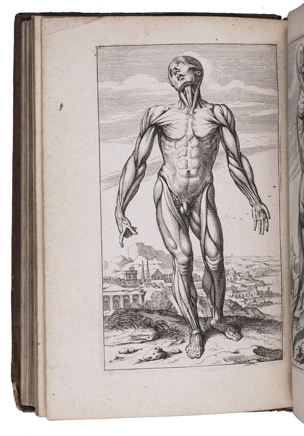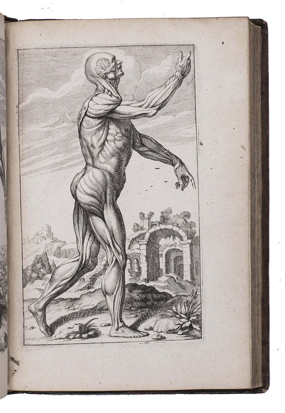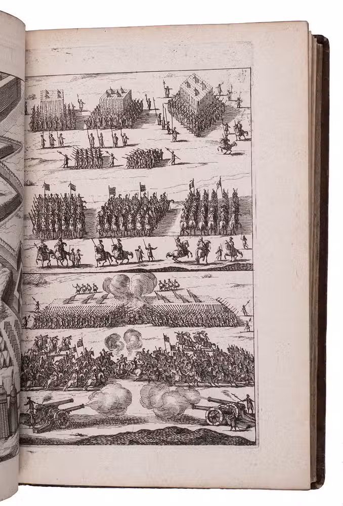 [Paris, N. Langlois, engraved 1688]. Complete suite of 11 double-page engraved plates, numbered [1a], [1b], 2-4, 6-11. Sprinkled calf (ca. 1700), richly gold-tooled spine, gold-tooled board edges. [47]; 30; [4]; [4]; 11 [+ 2 added] engraved prints.