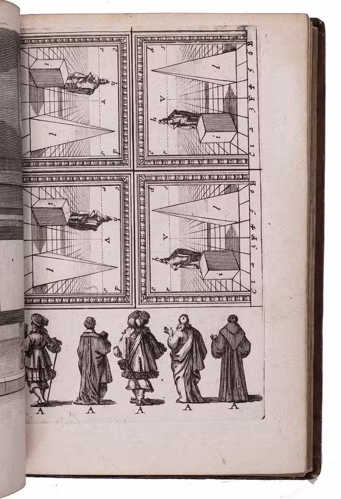 Highly interesting collection of five 17th-century print series (one a set of plates for an illustrated book) all in the field of art, drawing and ornamentation. They seem likely to have been printed together sometime around or soon after 1688.