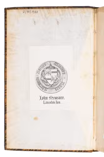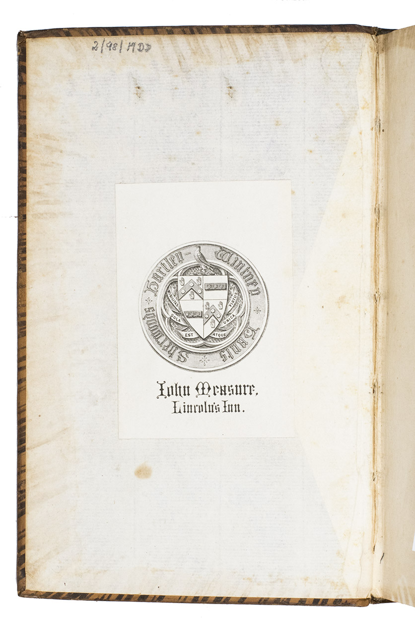 With the bookplate of John Measure mounted on the front pastedown. The edges and corners of the boards are very slightly scuffed, the top outer corner of the front board is bumped. The leaves and plate are somewhat browned. Otherwise in good condition. Cox I, pp. 138-9; ESTC T26158; cf. Lowndes, The Bibliogr. Manual of Engl. Lit. I, p. 242 (first ed.).