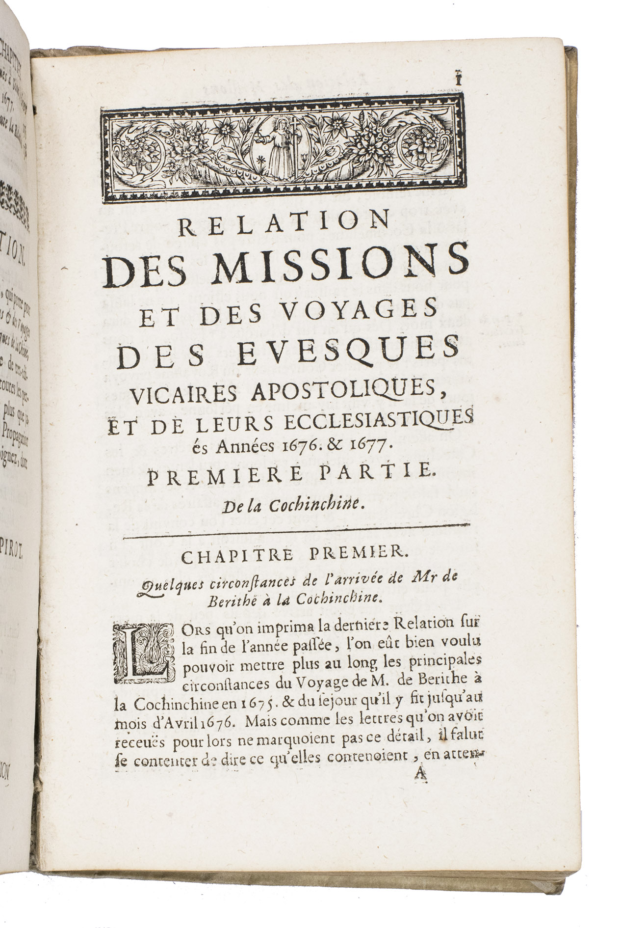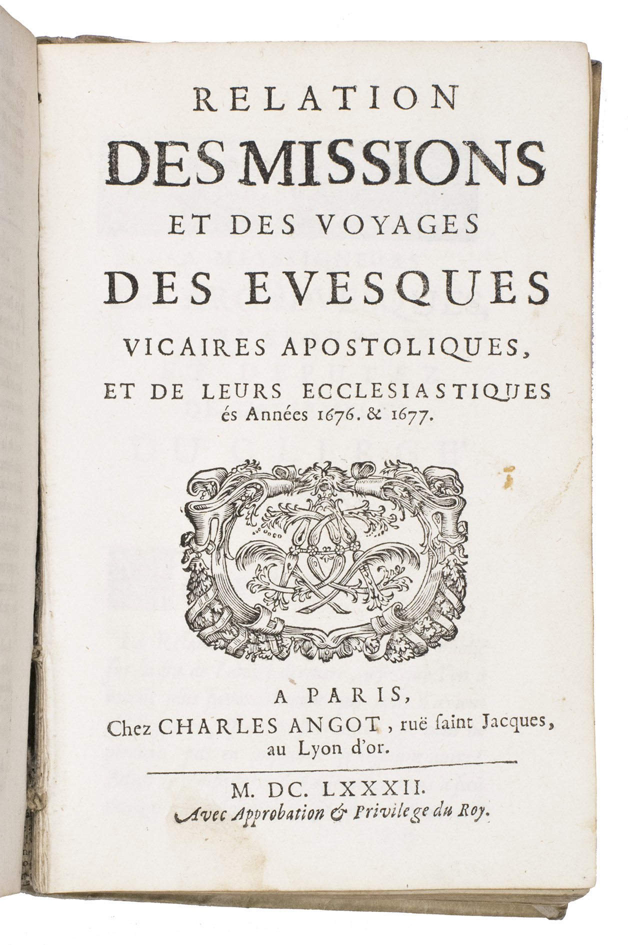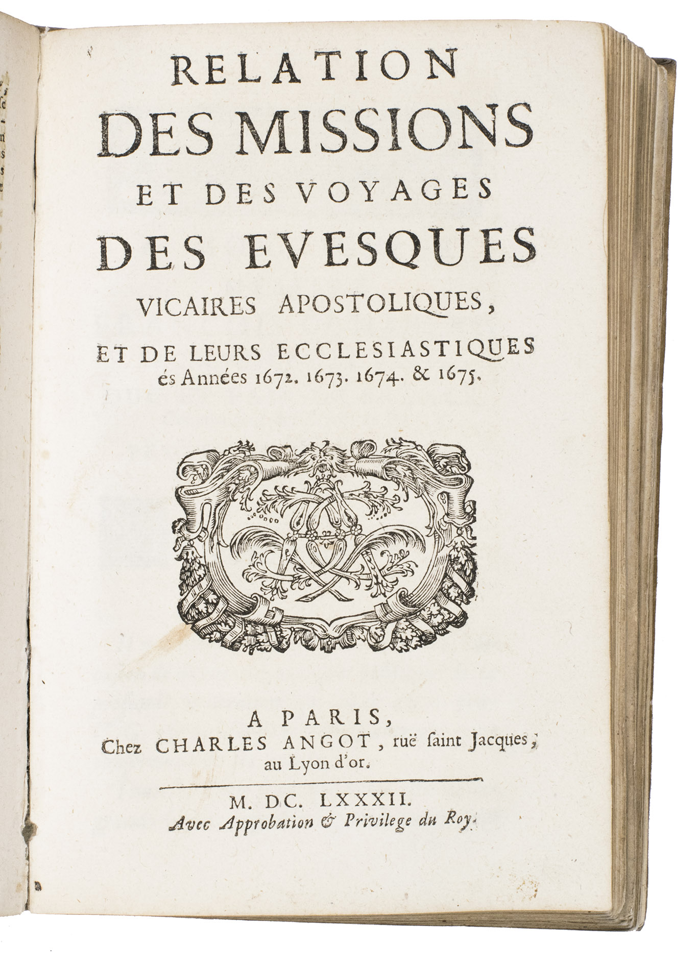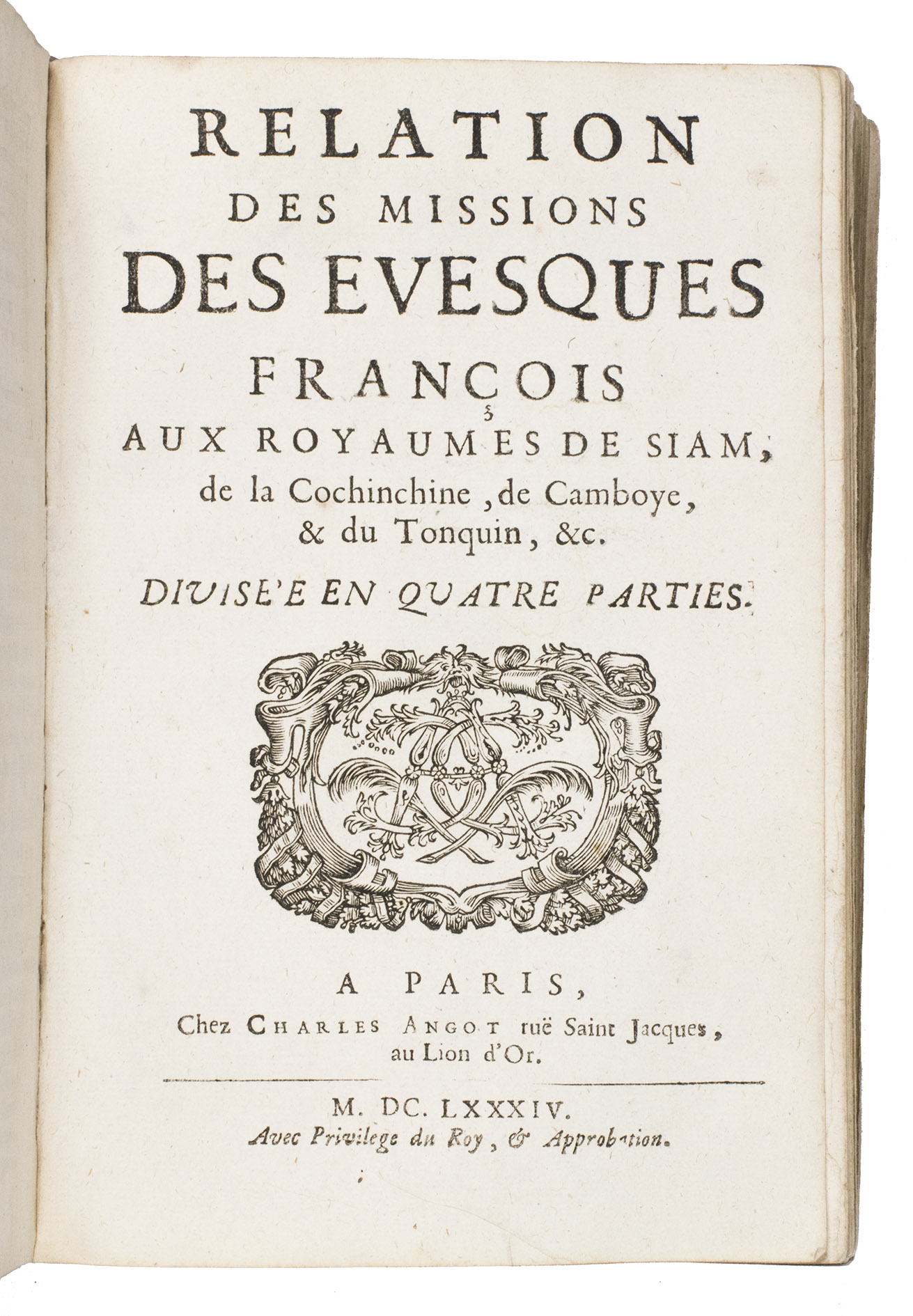 (3) [FERMANEL DE FAVERY, Luc (editor)]. Relation des missions des evesques François aux royaumes de Siam, de la Cochinchine, de Camboye, & du Tonquin, &c. Divisée en quatre parties.
