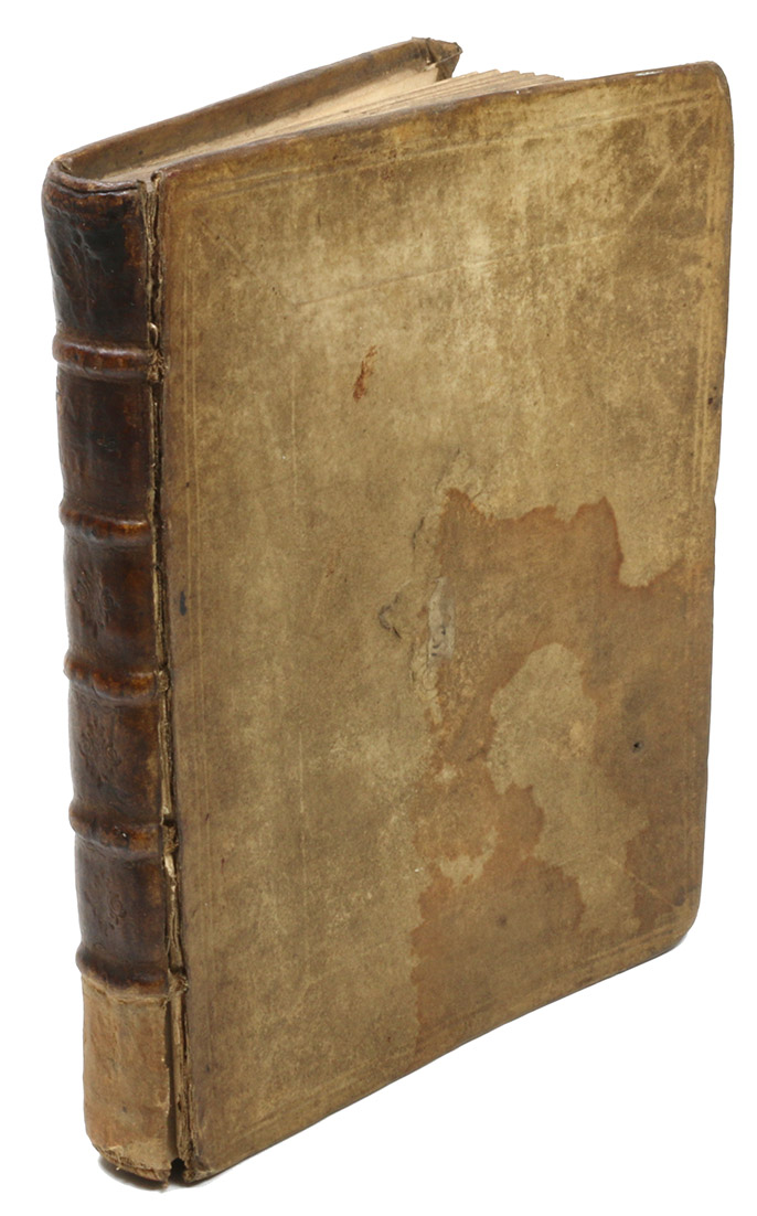 Mechelen, John Jaye, 1671 Small 4to. With woodcut device above colophon. Contemporary blind-tooled vellum, sewn on 5 supports. [8], 262, [2] pp.