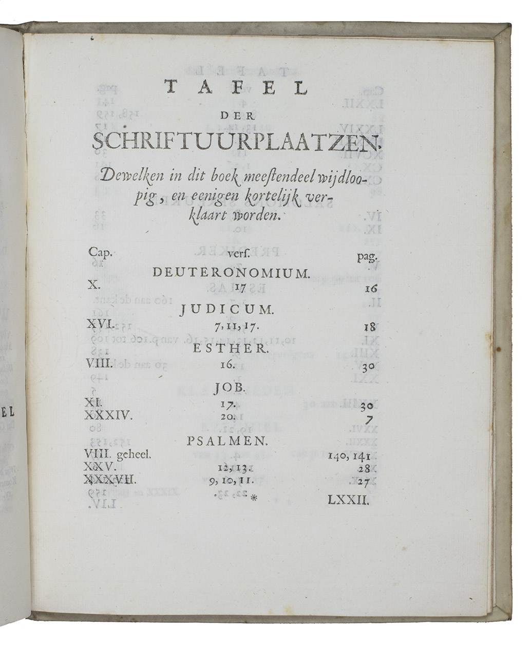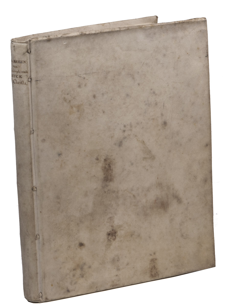 The present copy is printed on good quality, large (Crown) paper, watermarked: AM = horn on a crowned shield above 4 and WR. Even though about 9 mm has been trimmed at the head and something at the foot, the trimmed leaves measure 21.5 x 17.5 cm and have more than a 1 cm margin at the head and 3-4 cm at the gutter, foot and fore-edge. The gutter margin in particular (3 cm on each page) is twice that of normal copies. In very good condition, with only an occasional marginal spot or smudge, and some spots and a small light stain on the binding. STCN 095205853 (3 copies); for Van Breen: De Bie & Loosjes I, pp. 604-606 (noting the 1st ed.); Hylkema, Reformateurs II, p. 195; Mennonite encyclopedia I, p. 412.