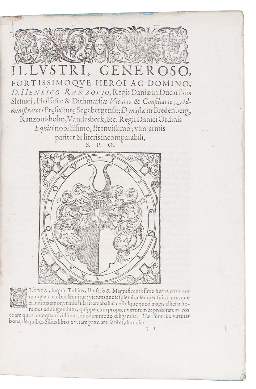 Frankfurt, Joannes Wechel and Petrus Fischer and consorts, 1592. 4to. With title-page printed in red and black, woodcut printer's device, woodcut head- & tail pieces and initials. Contemporary gold-tooled calf. [8], 750 [= 760], [84] pp.
