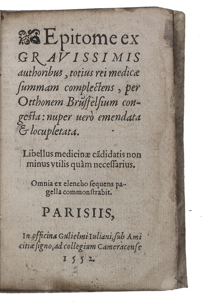 Epitome ex gravissimis authoribus, totius rei medicae summam complectens, ... congesta: nuper verò emendata et locupletata.