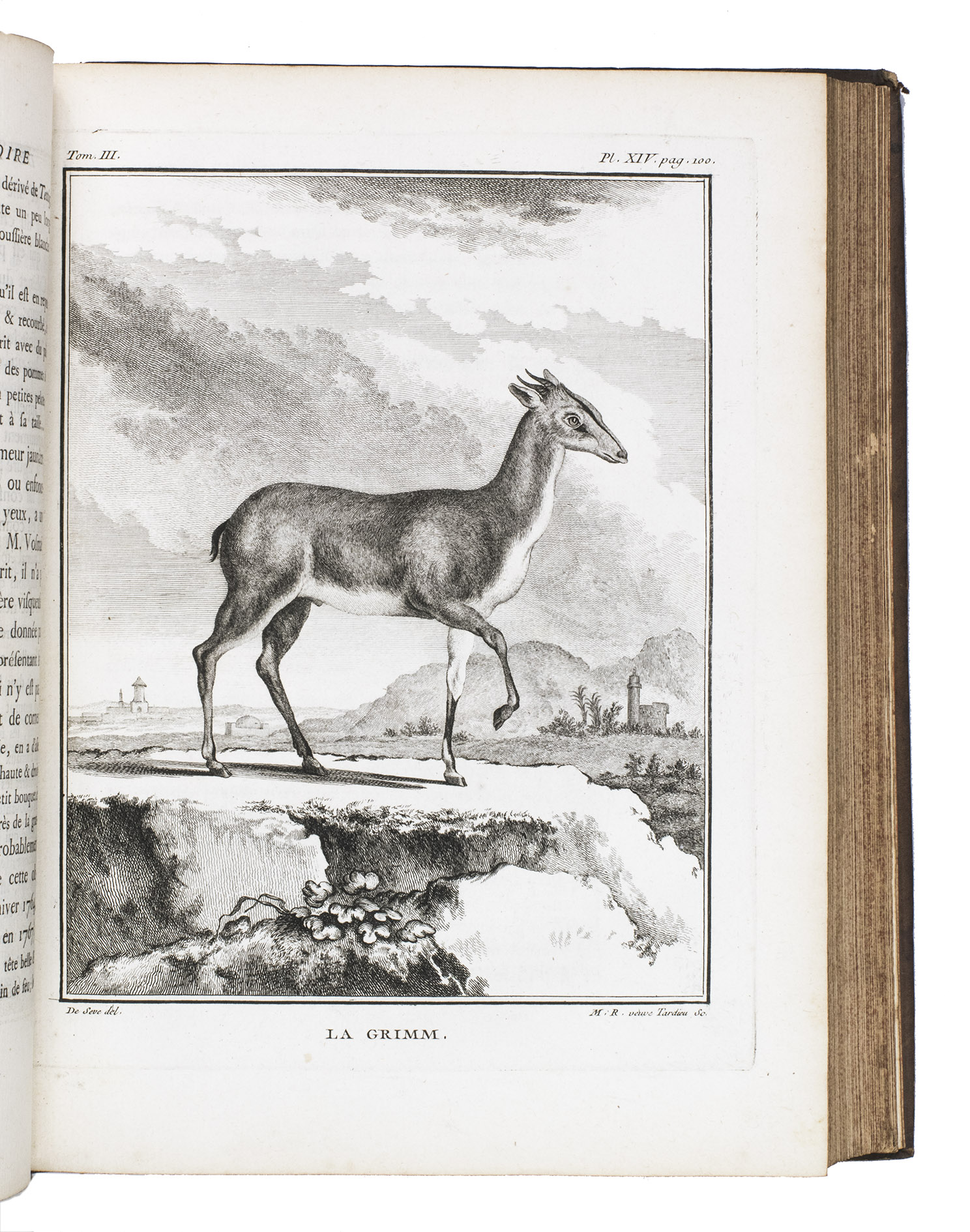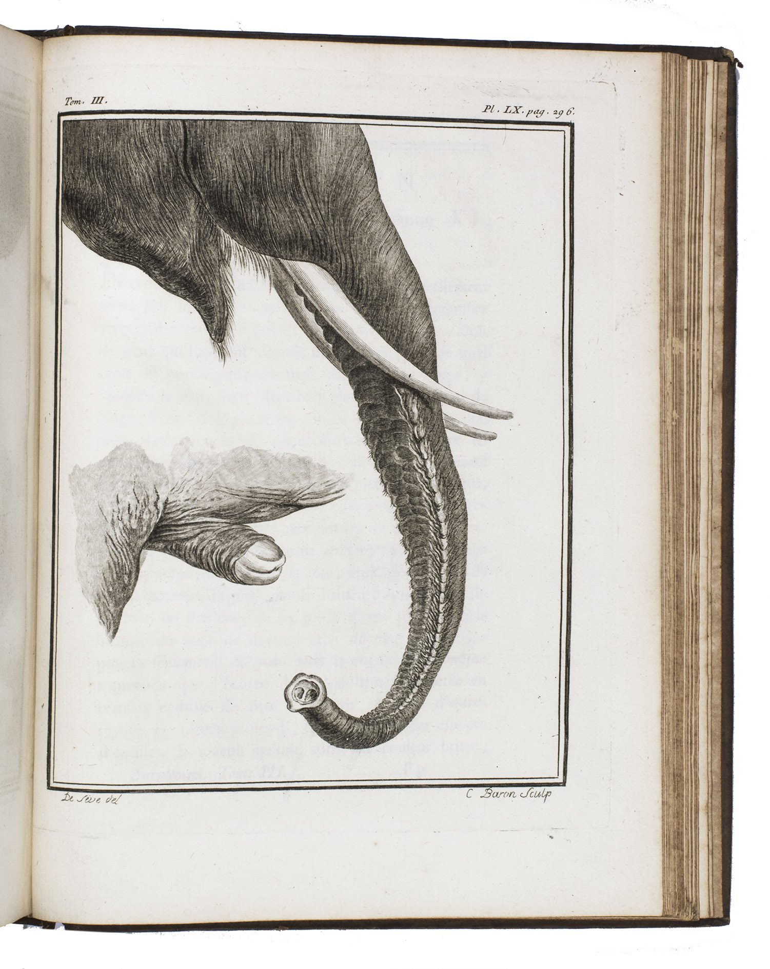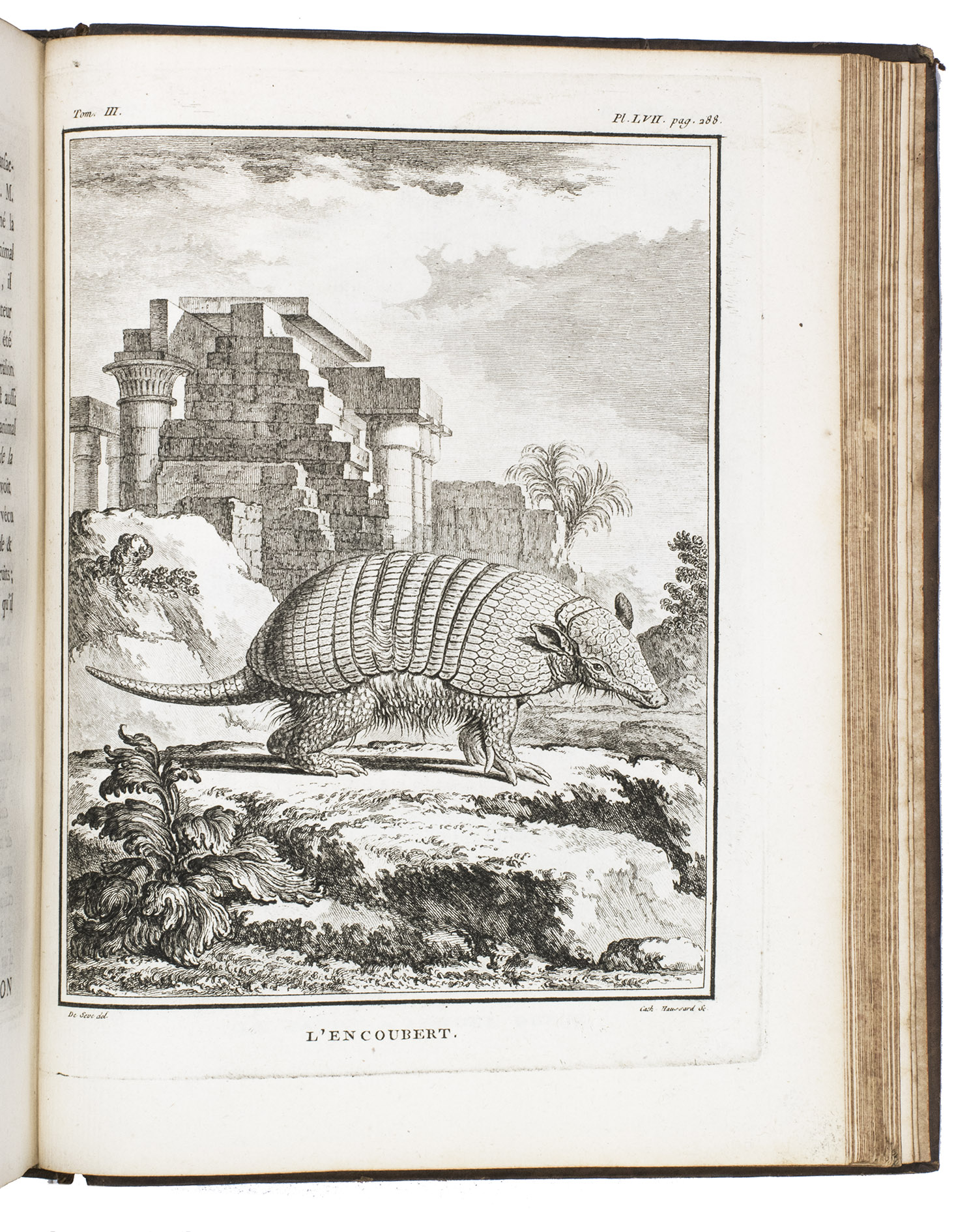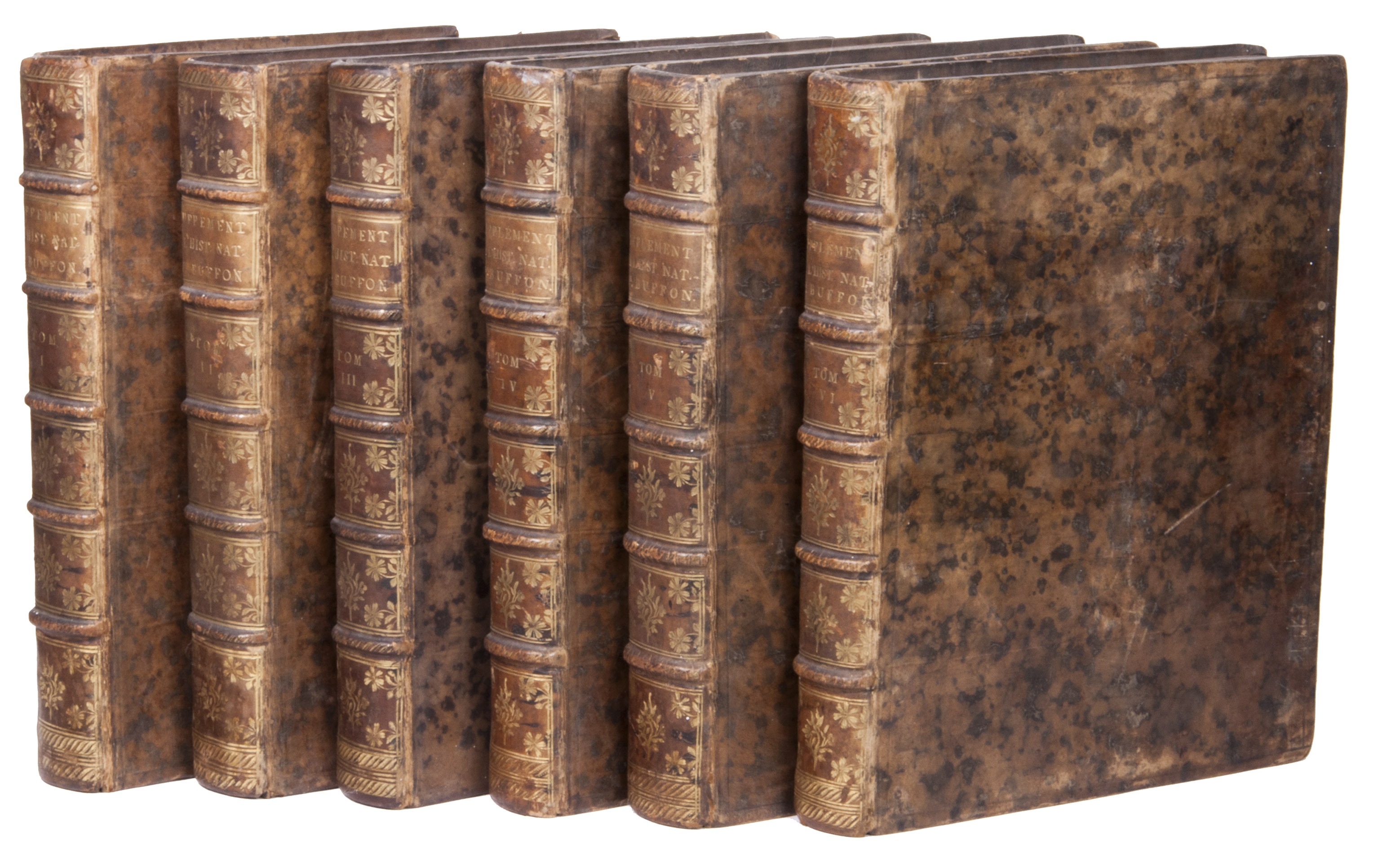 Paris, Imprimerie Royale, 1774-1782 (vols. 1-6); Dordrecht, A. Blussé and son, 1799 (vol. 7). 7 volumes. 4to. With 2 folding engraved maps and 218 plates (full-page and folding and including 2 bis), all engraved. Contemporary mottled calf, gold-tooled spine and board edges (vols. 1-6, uniform), 19th-century half calf, gold-tooled spine (vol. 7).