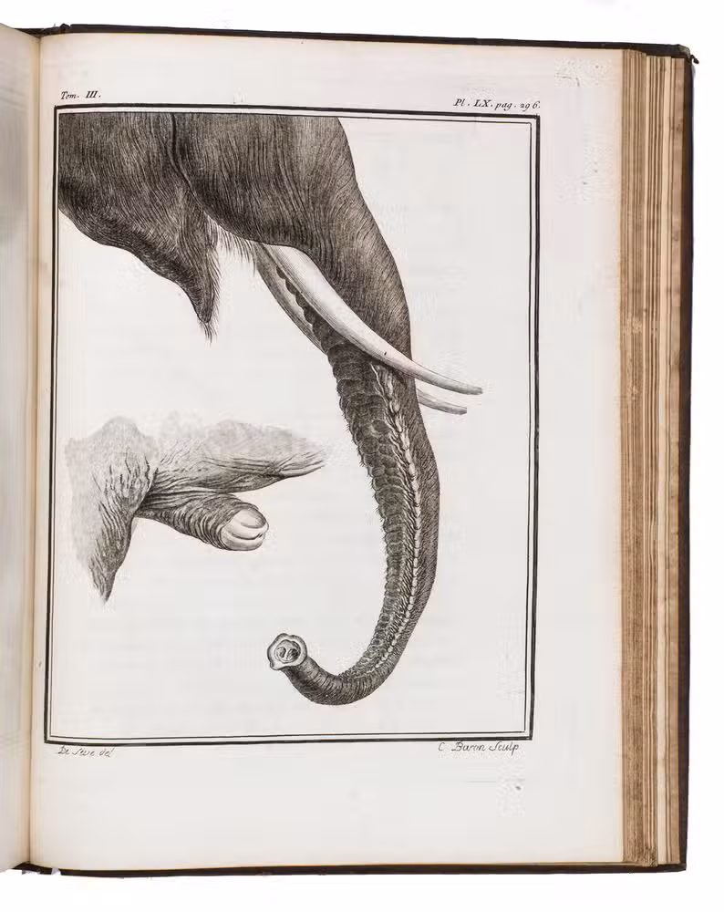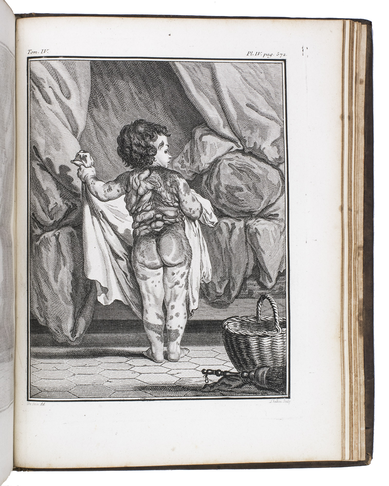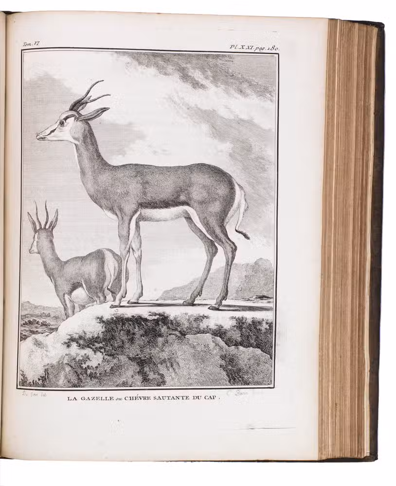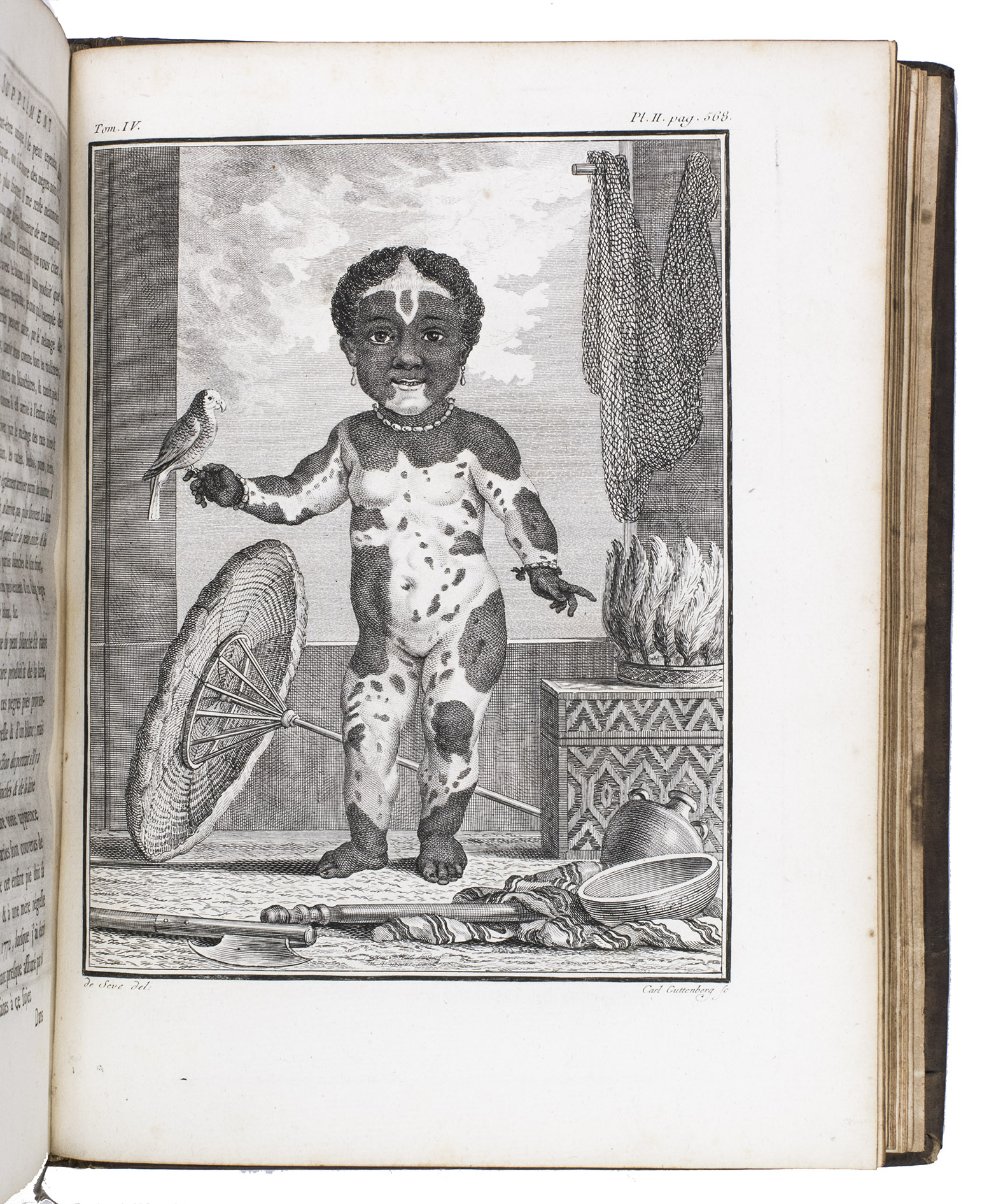 Paris, Imprimerie Royale, 1774-1782 (vols. 1-6); Dordrecht, A. Blussé and son, 1799 (vol. 7). 7 volumes. 4to. With 2 folding engraved maps and 218 plates (full-page and folding and including 2 bis), all engraved. Contemporary mottled calf, gold-tooled spine and board edges (vols. 1-6, uniform), 19th-century half calf, gold-tooled spine (vol. 7).