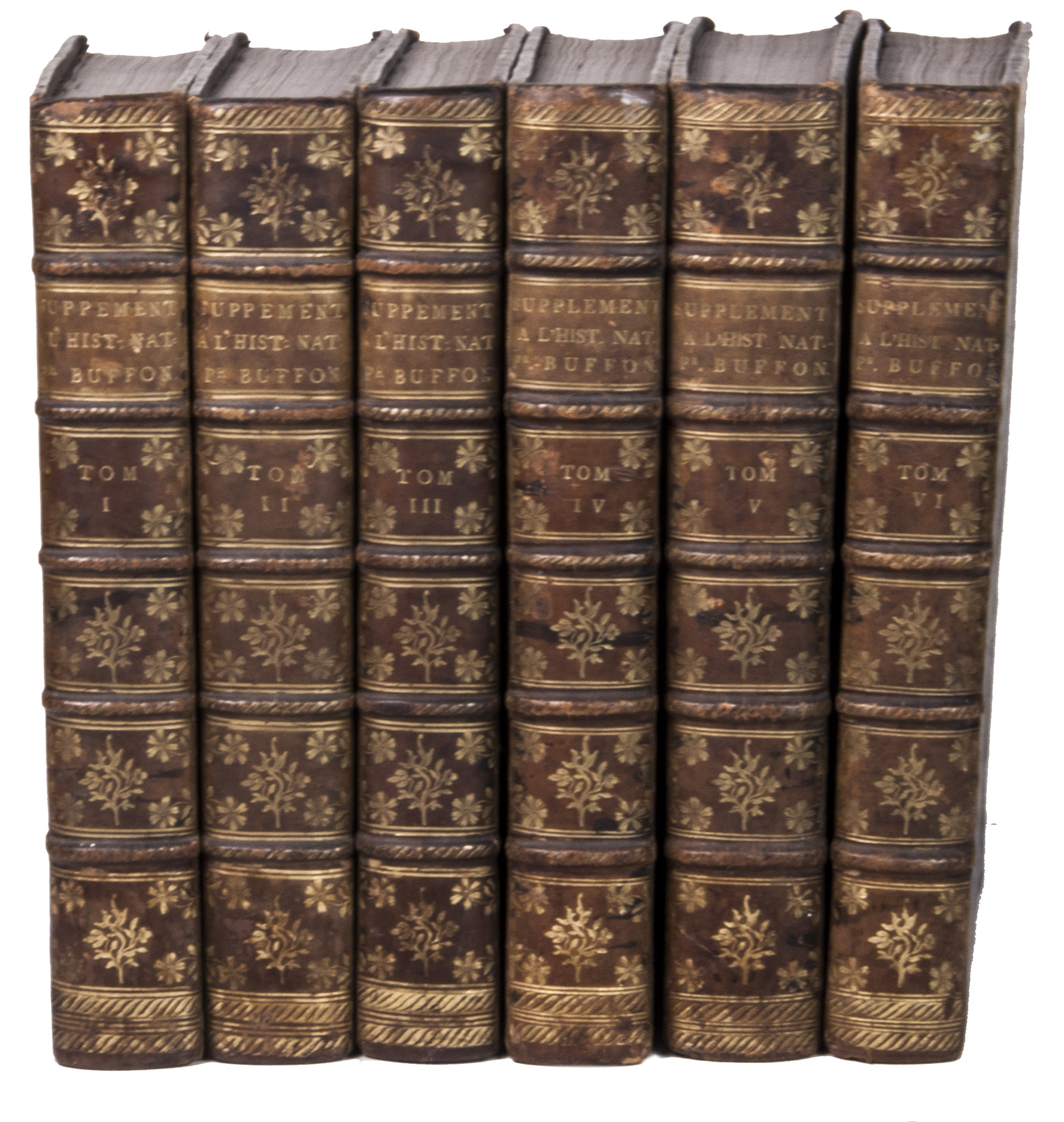 The complete supplements to Buffon's famous Histoire naturelle, with the first 6 volumes in the first edition and the last volume in the new edition published in Amsterdam and Dordrecht, the only quarto edition to rival the original French Imprimerie Royale edition.