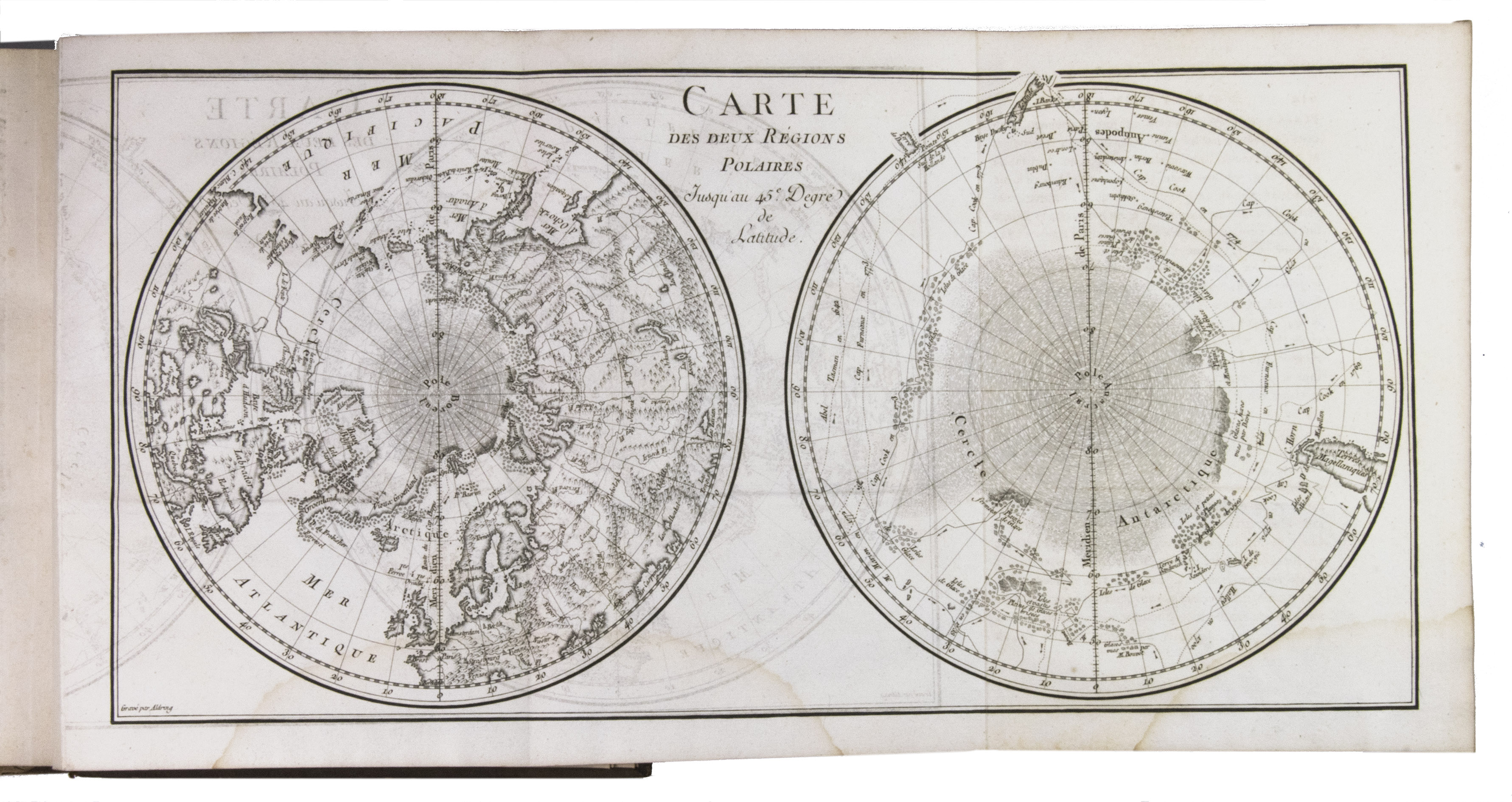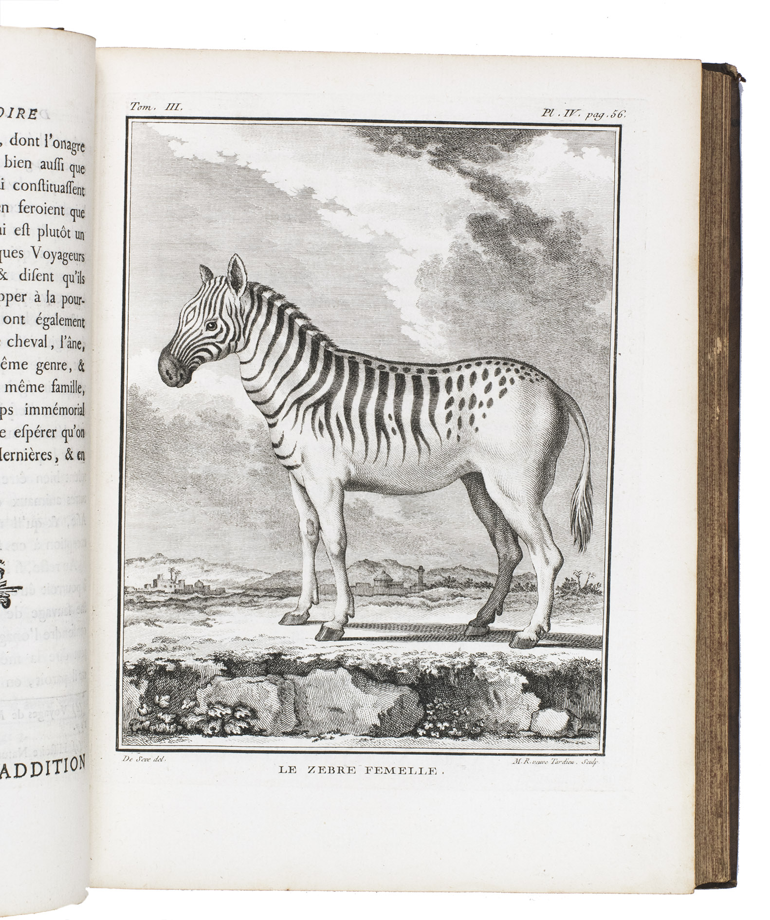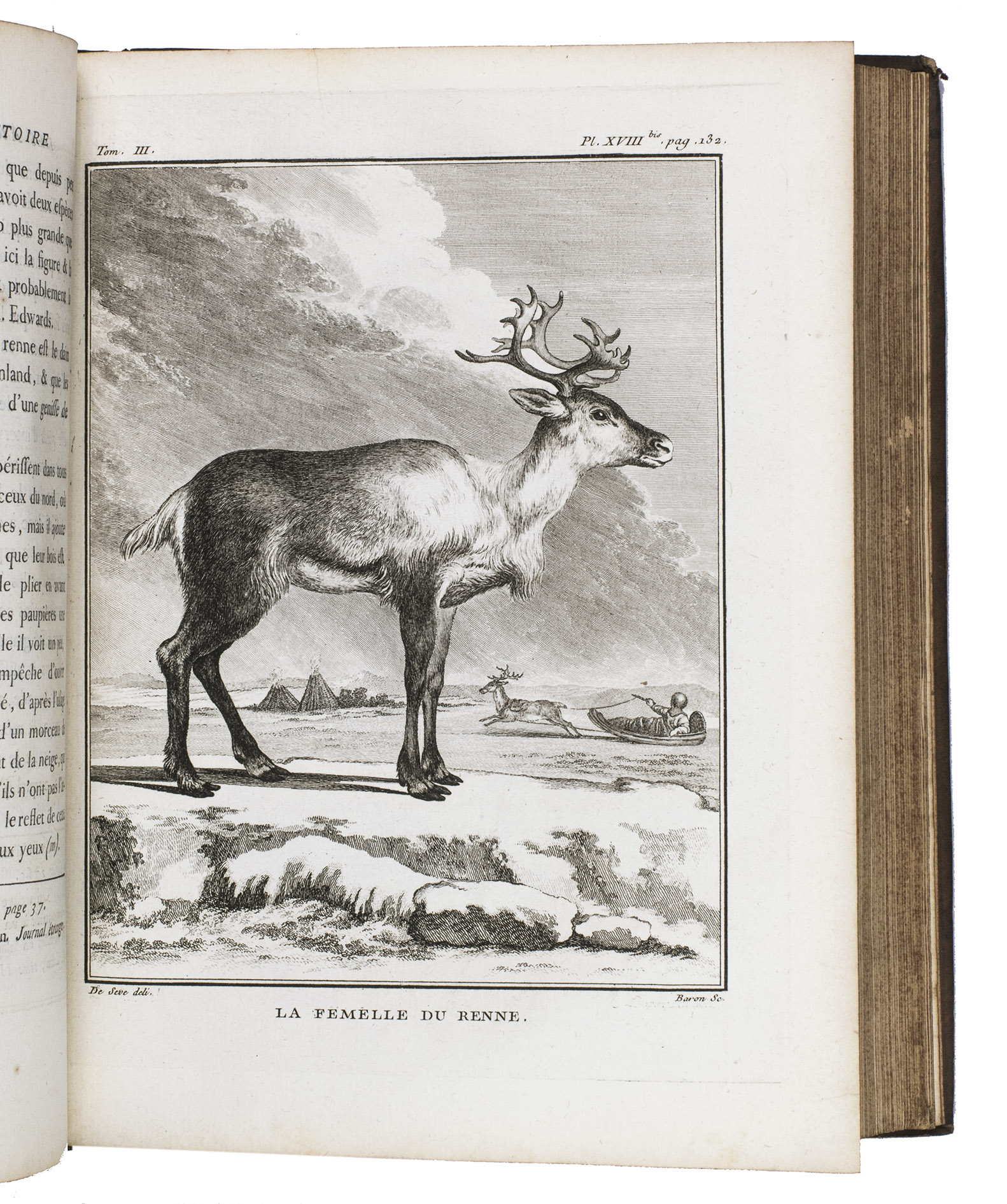 The bindings show some scratches and minor wear but are structurally sound, volume 5 with a few water stains in blank corners and on the polar region map. The complete Suppléments to Buffon's masterpiece in very good condition. Bertin et al., Buffon (Paris, 1952), especially p. 235; DSB II, pp. 576-581; Nissen, ZBI 672, 678; PMM 198.