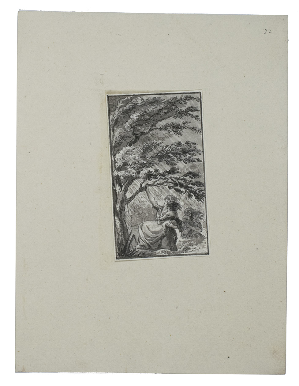 [Ca. 1781]. Various sizes. 22 washed pen and ink drawings and 1 engraving on paper. Mostly loose, nos. 8, 10, 20-23 pasted on paper support.