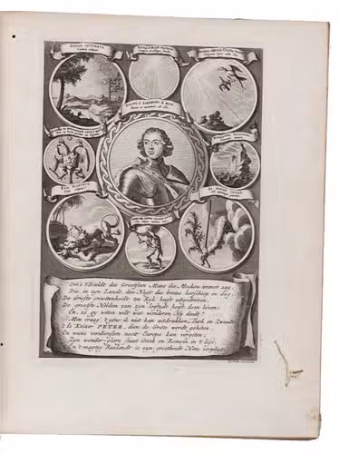 Verzámeling van uitgekórene zin-spreuken, en zinnebeeldige print-vercieringen, eertyds, op bevel van den aller doorlugtigsten Keizer der Russen, Peter Alexis, of the Gróte, getékent en gesnéden ...