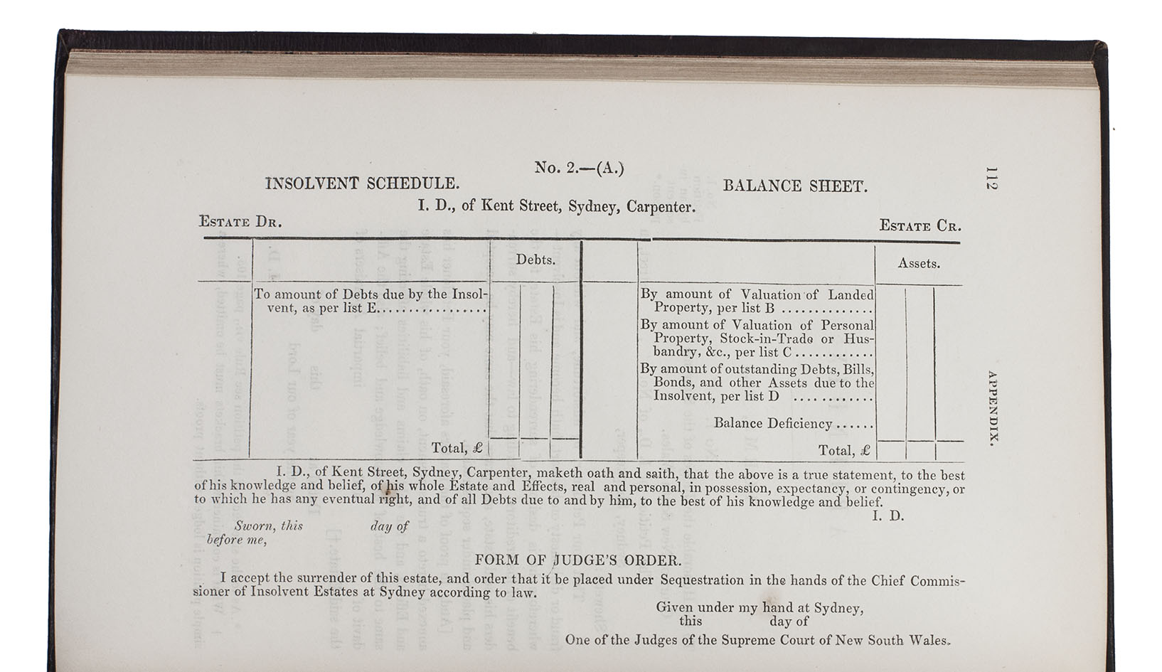 Rare first and only edition of the first Australian treatise on bankruptcy. While in Australia, Burton attempted to ameliorate the harsh treatment of convicts at Norfold Island, where he was sent in 1834 "to try some convicts who had mutinied". Many were sentenced to death, but as no clergy were on the island, Burton reprieved them until their cases could go before the executive council. He endeavoured also with some success to improve the miserable condition of the convicts.