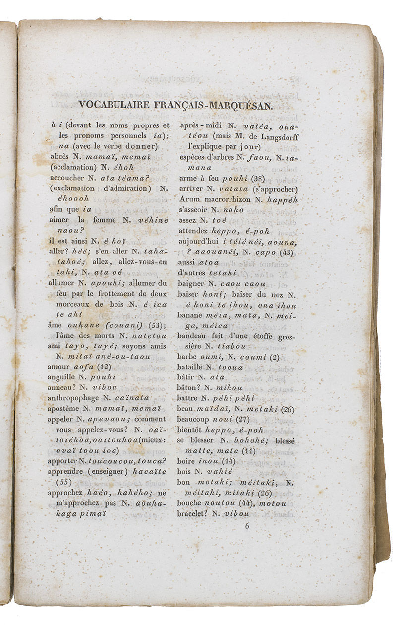 A rare first edition of a work about the history, geography and language of the Marquesas islands.