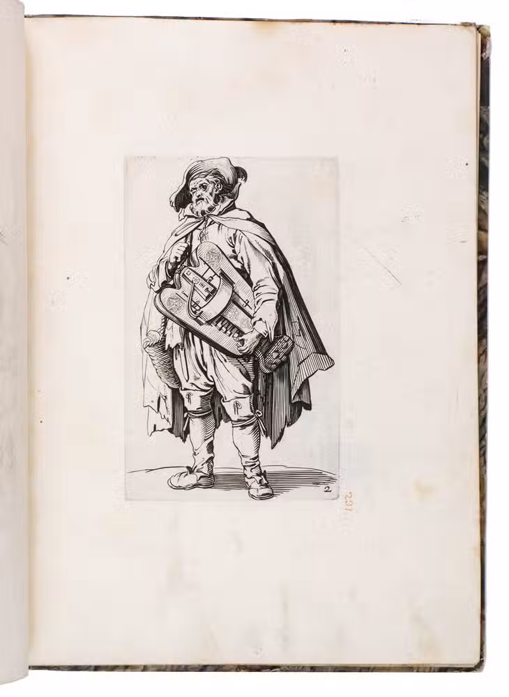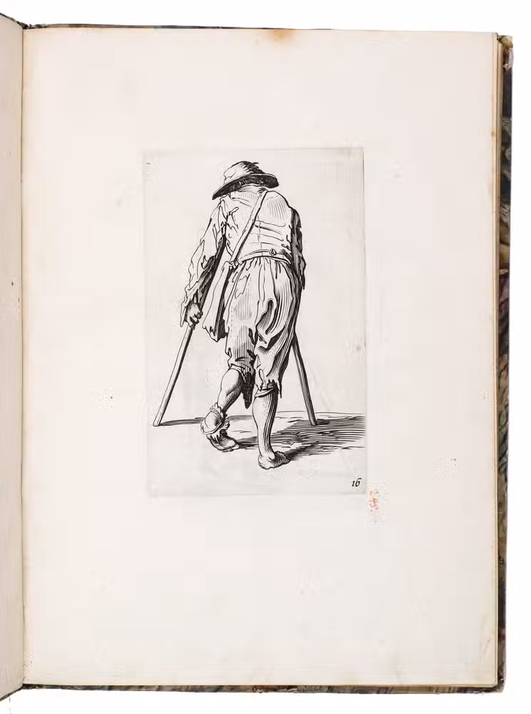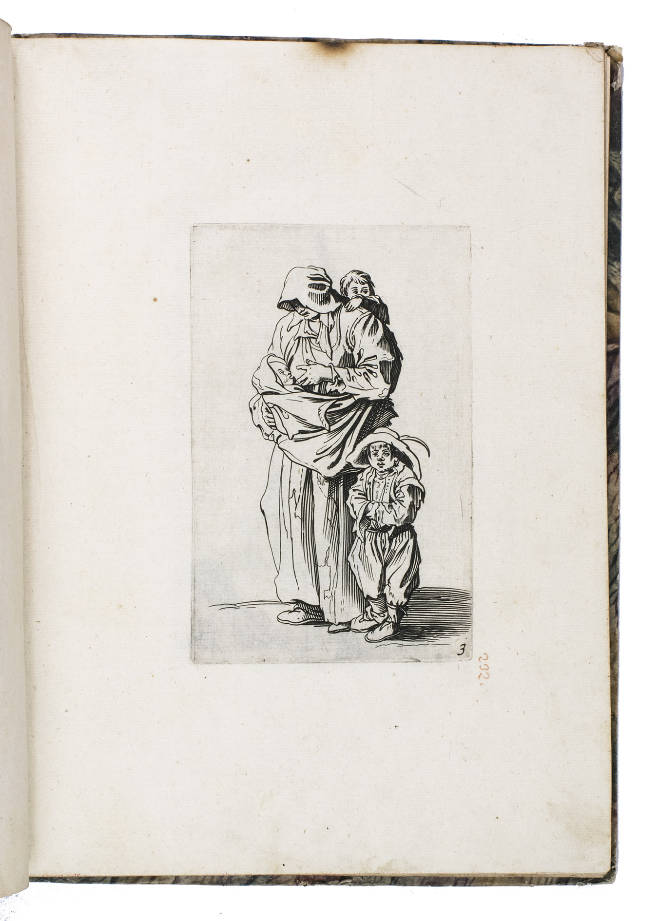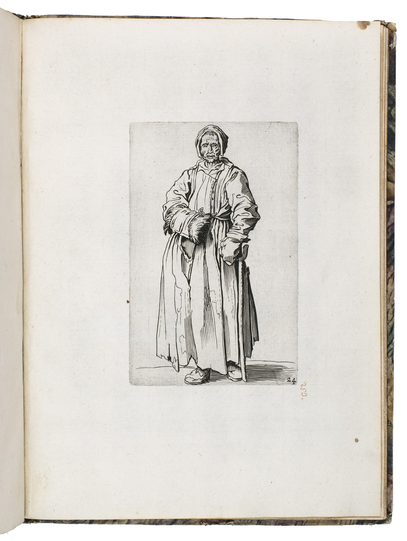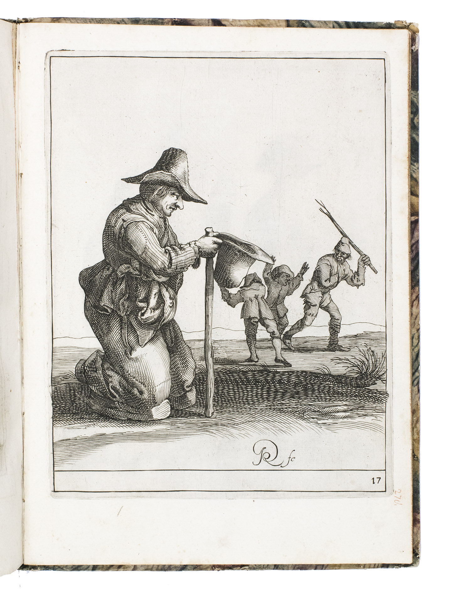 [Amsterdam], Claes Jansz. Visscher, [ca. 1645]. A series of 24 numbered engraved plates by Claes Jansz. Visscher after Jacques Callot (some copied in mirror image), the first with the title on a banner carried by the beggar in plate 1.