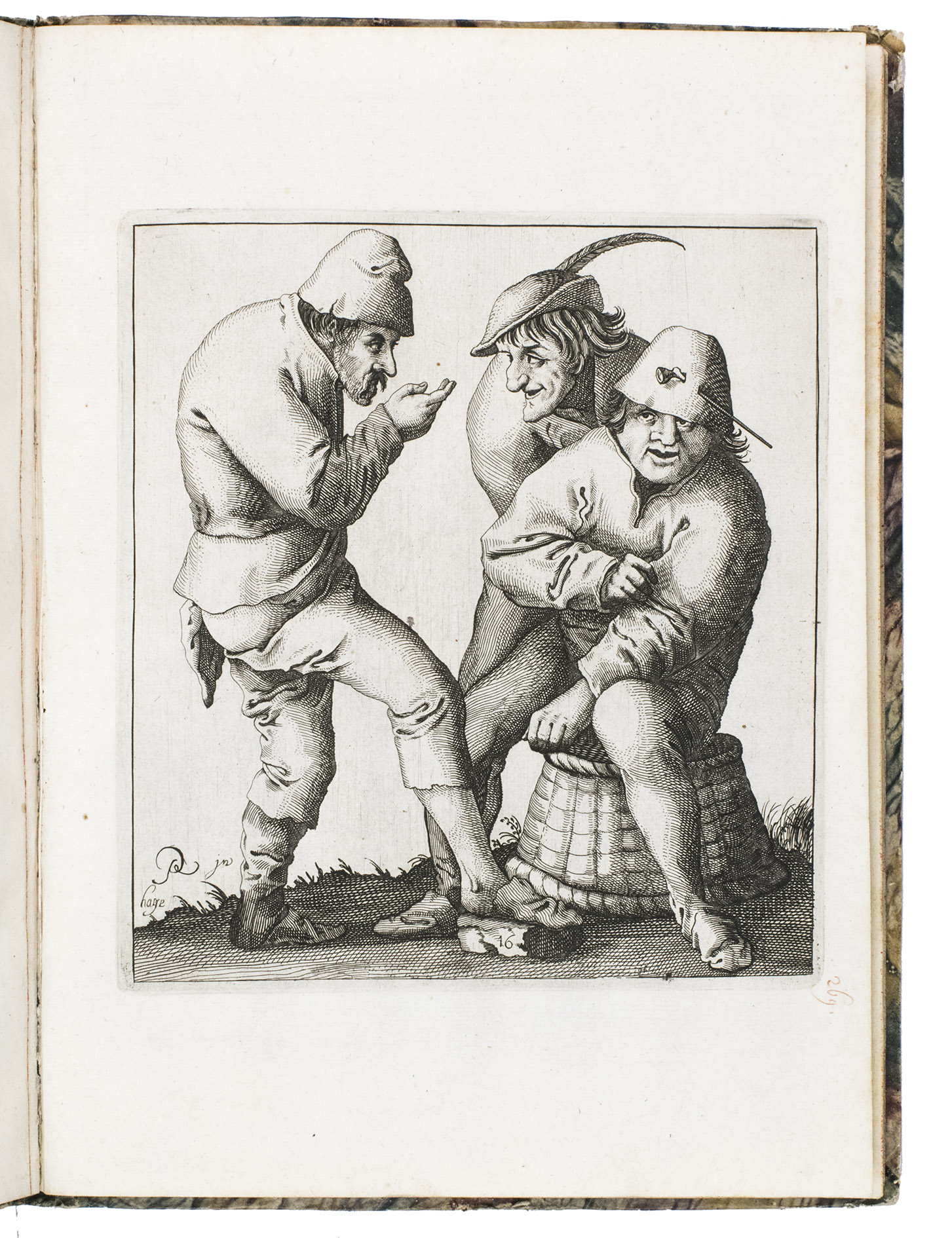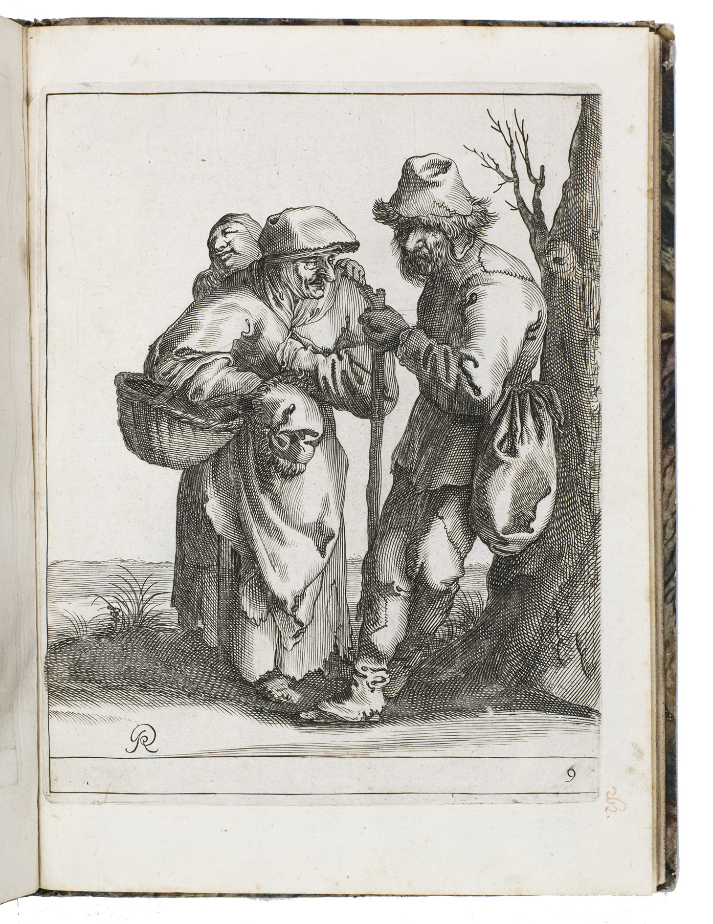 Ad 1: Only copy located, with the plates in their first state, of a print series depicting beggars and tramps published by Claes Jansz. Visscher after the original ca. 1625 print series by Jacques Callot, Capitano de Baroni. Hollstein notes that the stock list of Claes Jansz. Visscher's son Claes Claesz. Visscher II includes this title, but no copy could be located. The plates apparently descended to Carel Allard (active 1673-1707) for he published it with the plates in a second state, bearing his own name (known only from a copy at Yale University Library).