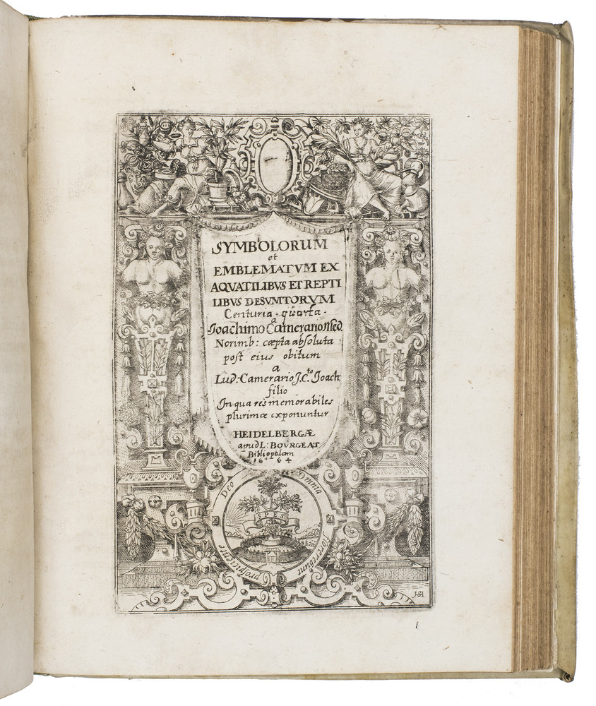 (4) CAMERARIUS, Joachim and Ludwig CAMERARIUS. Symbolorum et emblematum ex aquatilibus et reptilibus desumtorum centuria quarta.