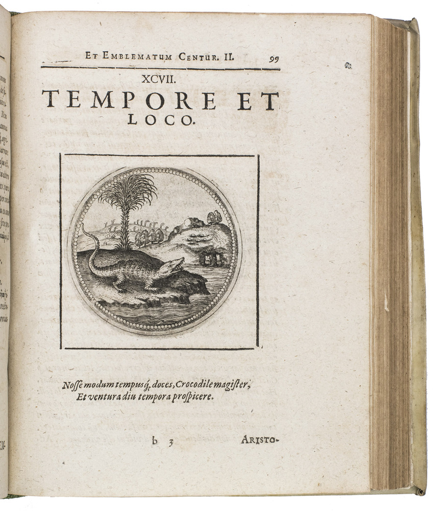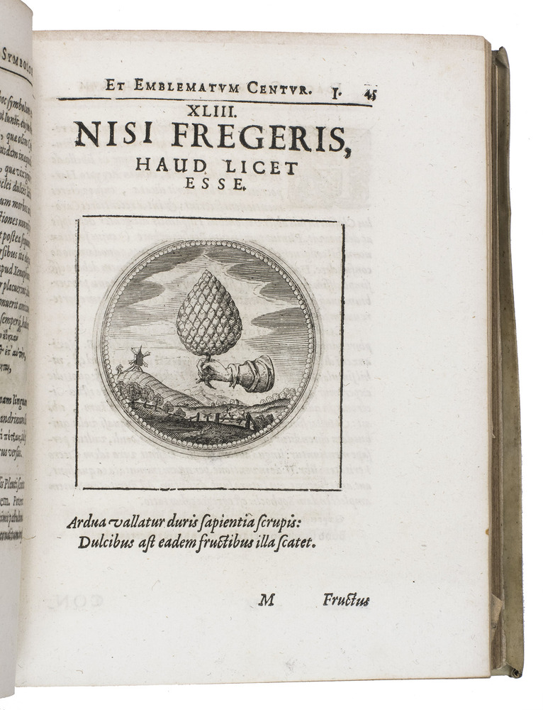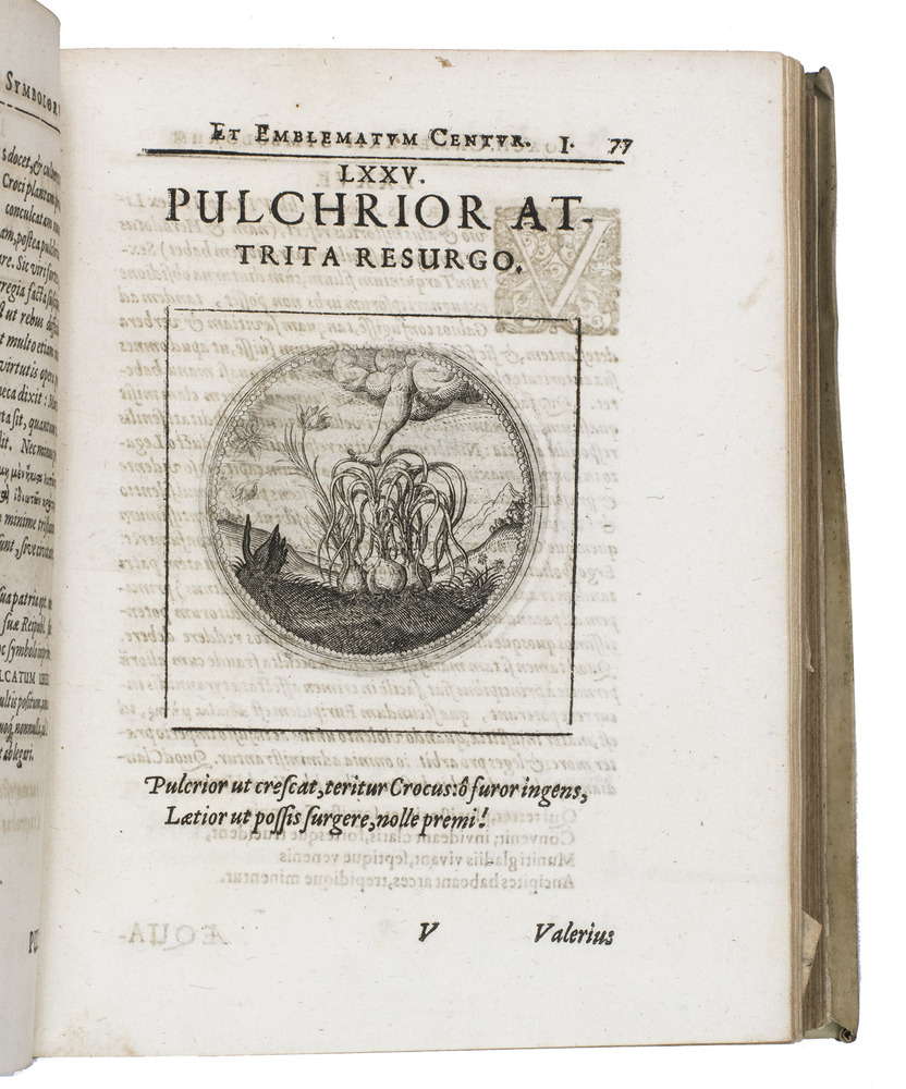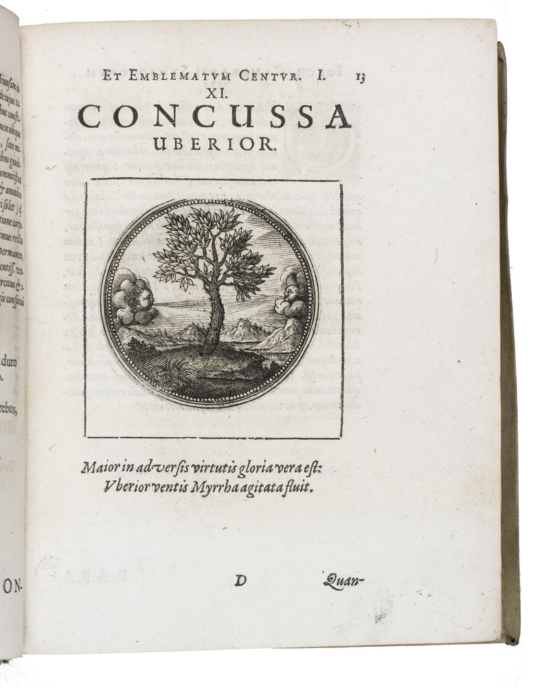 This work by Camerarius was the first to treat the subject of natural history in emblematic form. Each emblem has its own title above and a short motto beneath the illustration, an extensive explanation can be found on the facing page, these explanations are influenced by Renaissance hieroglyph studies, Camerarius knowledge of nature based on Plinius and other classical scholars, the author's own experience as a botanist, and on contemporary authors like Conrad Gesner and others.