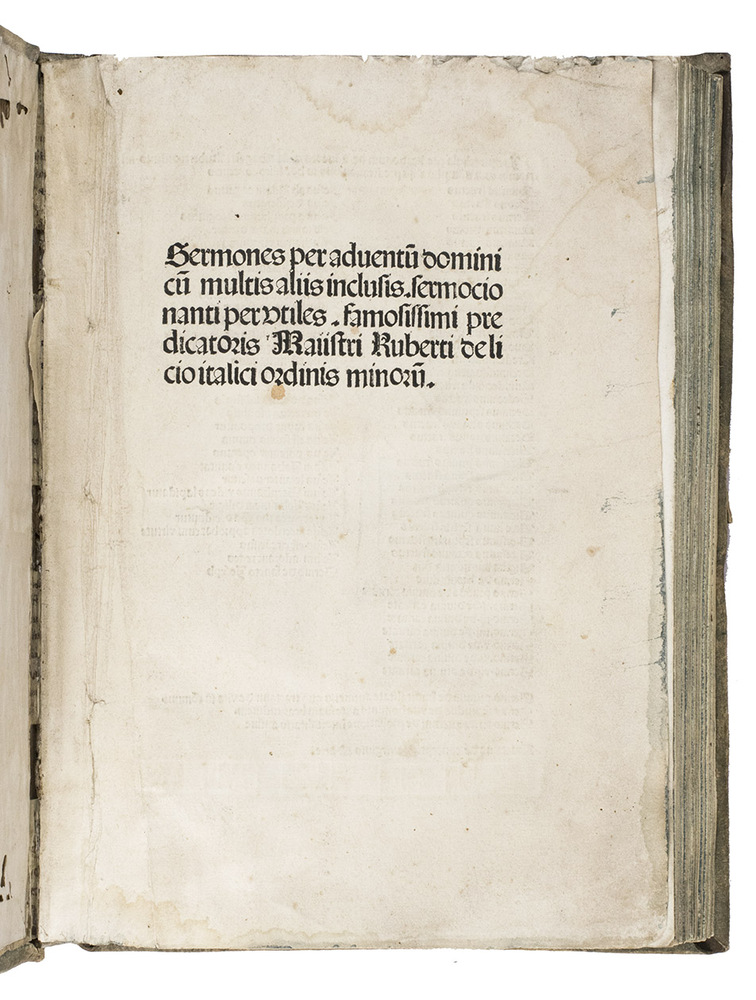 Sermones per adventu[m] domini cu[m] multis aliis inclusis. sermocionanti per utiles. famosissimi predicatoris Maiistri Ruberti de Licio Italici ordinis minoru[m]. [= Sermones de adventu, Sermo de S. Joseph, Sermo de Beatitudine, Sermones de divina caritate, Sermones de immortalitate animae].