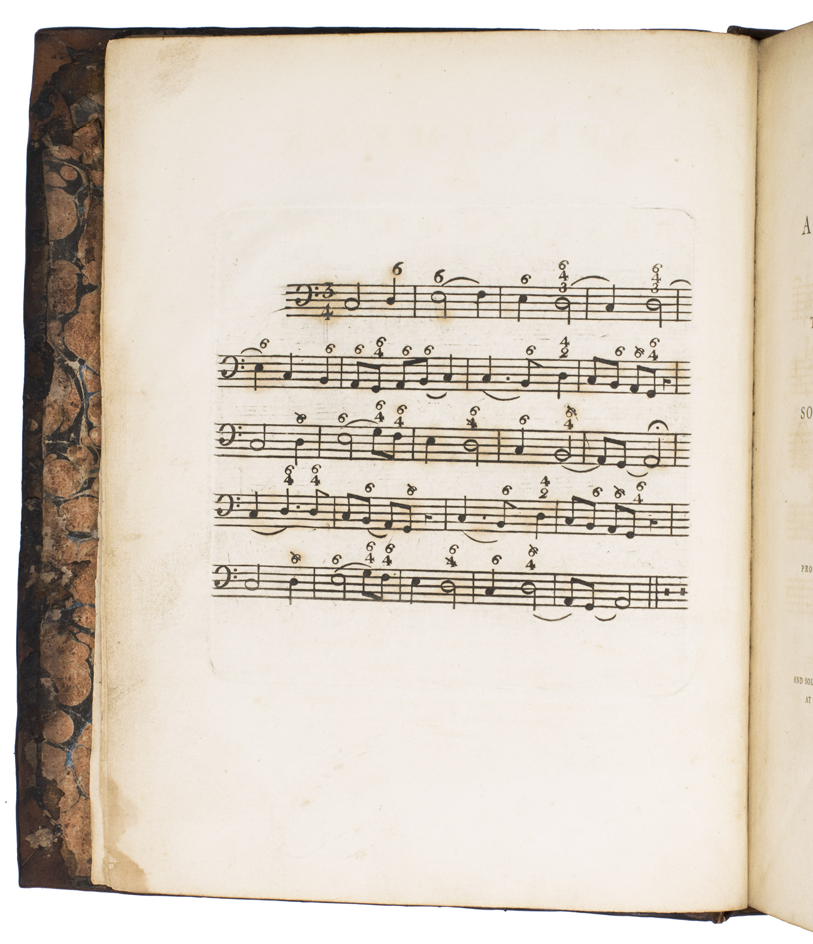 Cambridge, Printed by John Burges printer to the university, 1796. 2 parts in 1 volume. 4to. With an engraved sheet with musical notation. Contemporary brown calf with a later spine. [8], IX, [1 blank], 180; [2], 71, [1 blank], [1], [1 blank] pp.