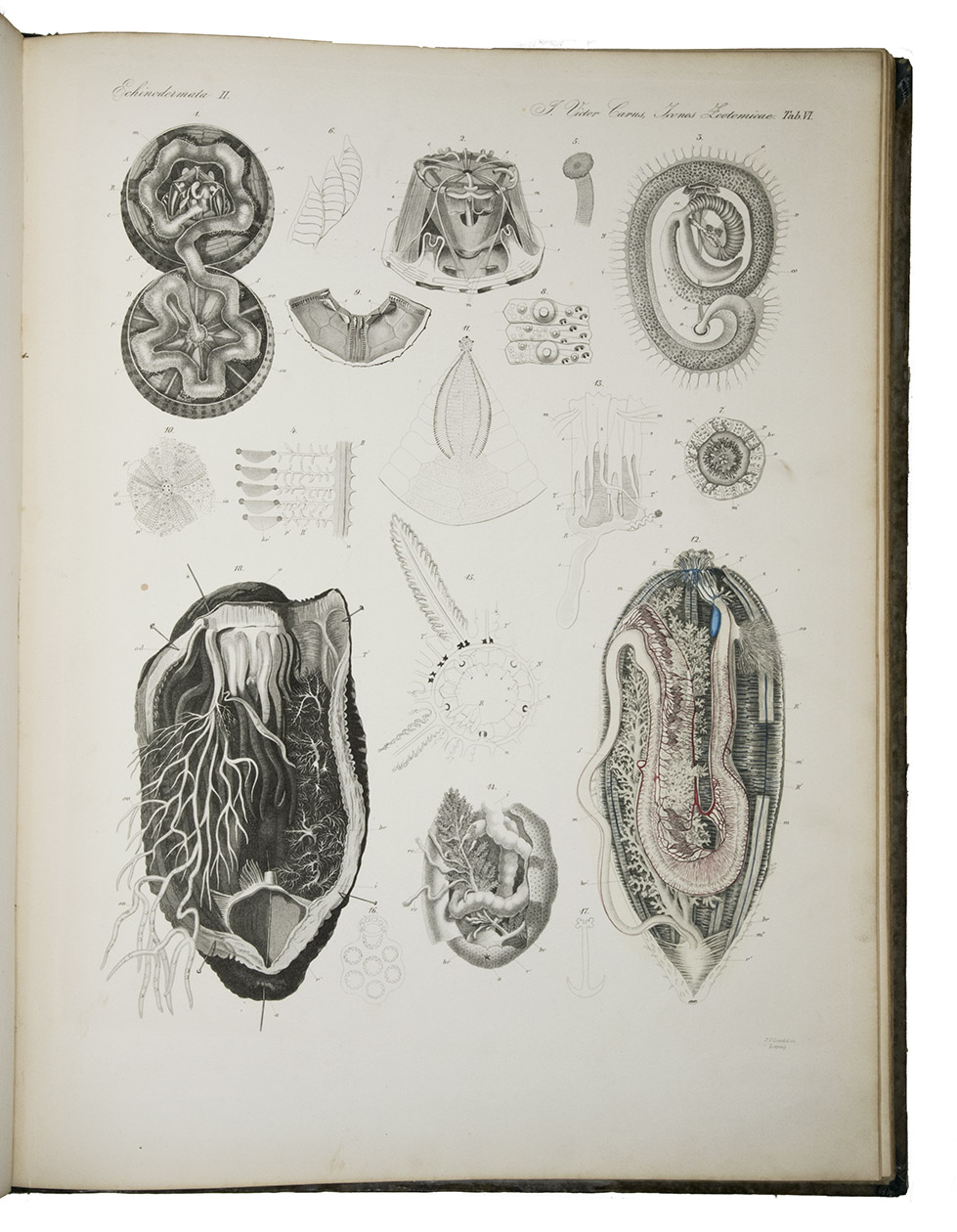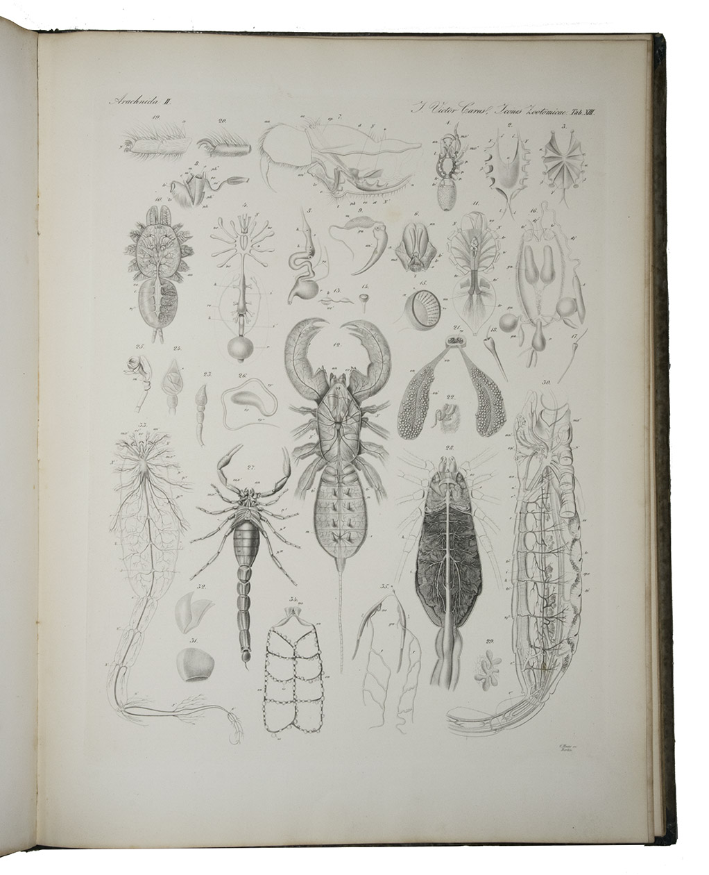 Icones Zootomicae. Mit Originalbeiträgen der Heerren G.J. Allman, C. Gegenbaur, Th. H. Huxley, Alb. Kölliker, H. Müller, M.S. Schultze, C.Th.E. von Siebold und F. Stein. Herausgegeben von Julius Victor Carus. Erste Hälfte oder Tafel I-XXIII: Die Wirbellosen Thiere.