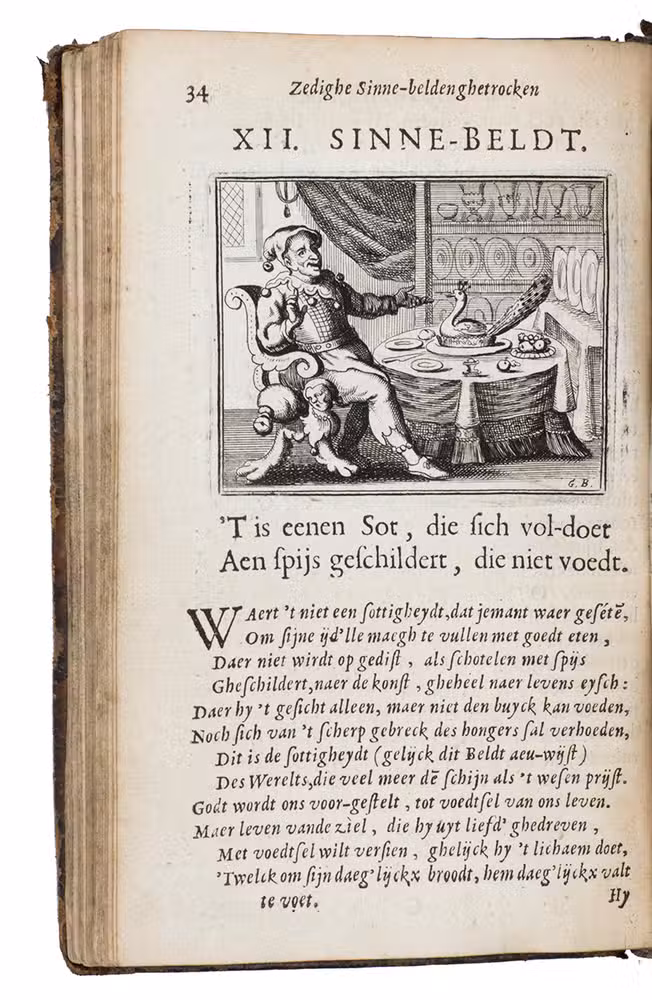 Zedighe sinne-belden ghetrocken uit den on-gheschreven boeck van den aerdt der schepselen, met korte aen-merckinghen, op de deughden ende de sonden oft dat tot de selve verweckt, verdeelt in twee deelen.