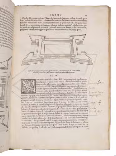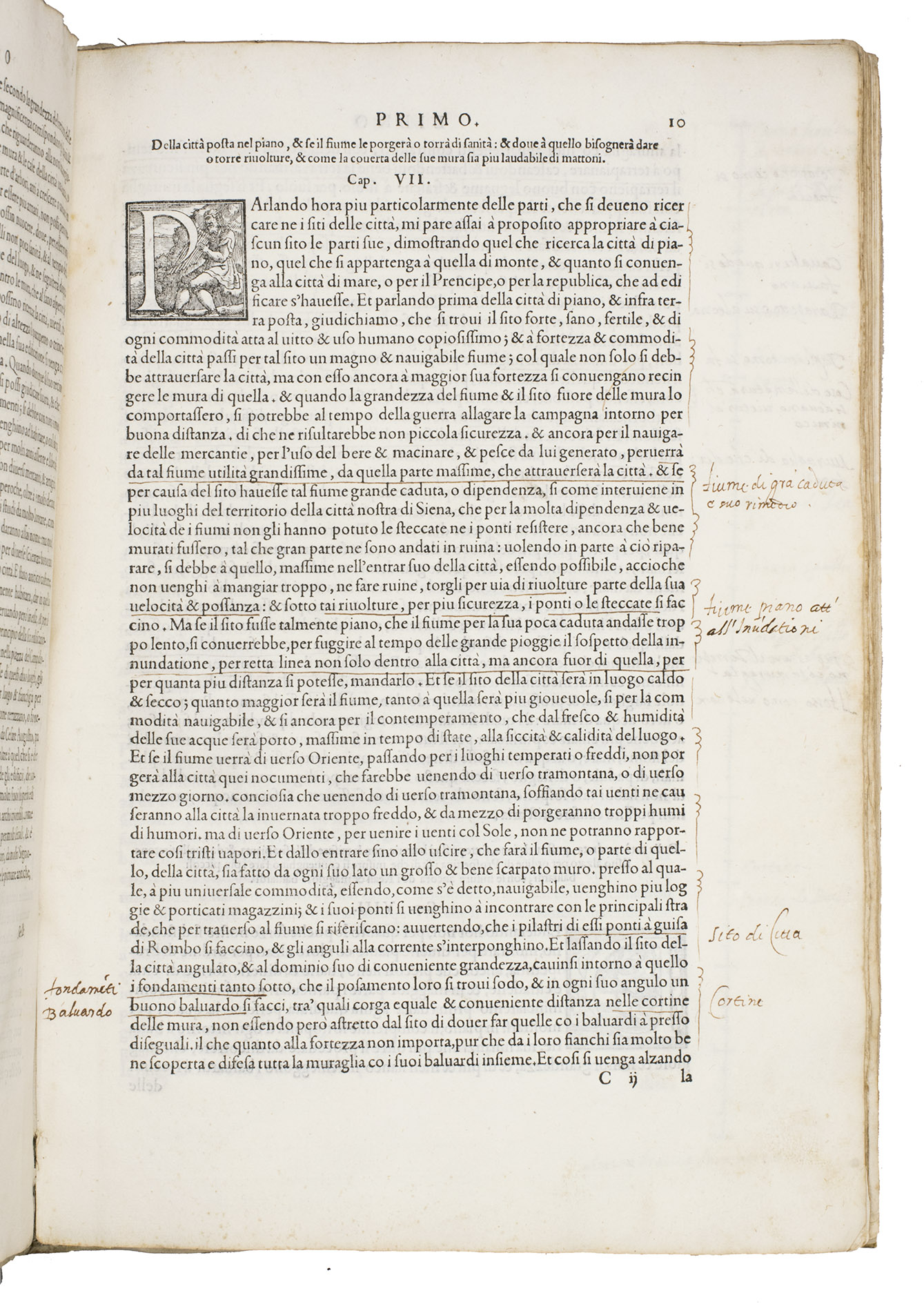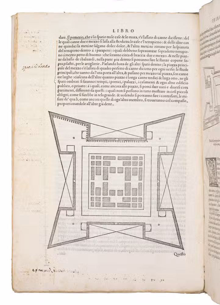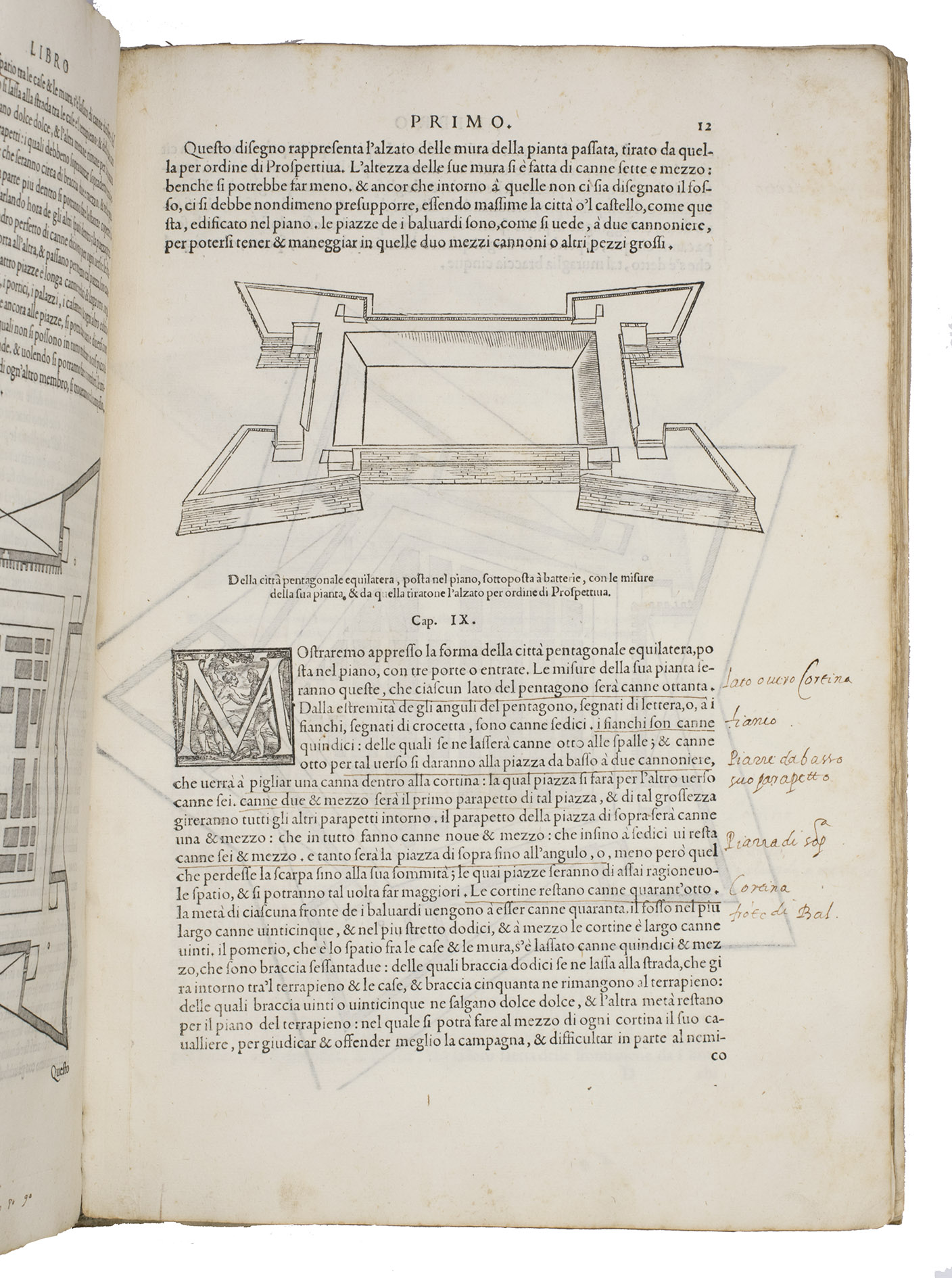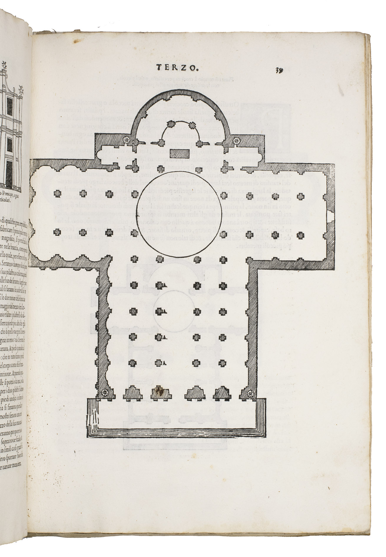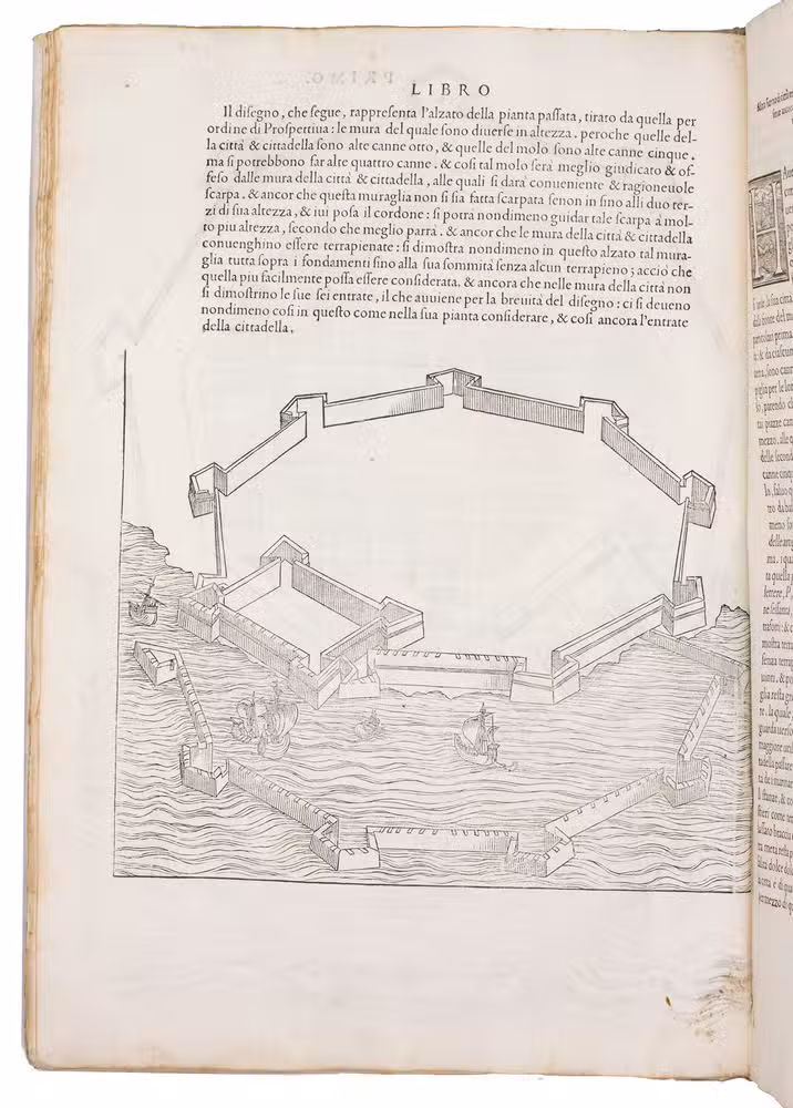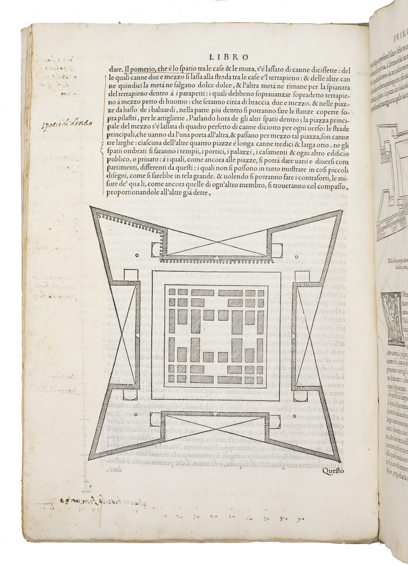 Rare first edition of a beautiful Renaissance woodcut book on architecture and perspectival design by Pietro Cataneo (died 1569), architect in Siena, where he built the Palazzo Franceschini and other important buildings in the Republic of Siena.