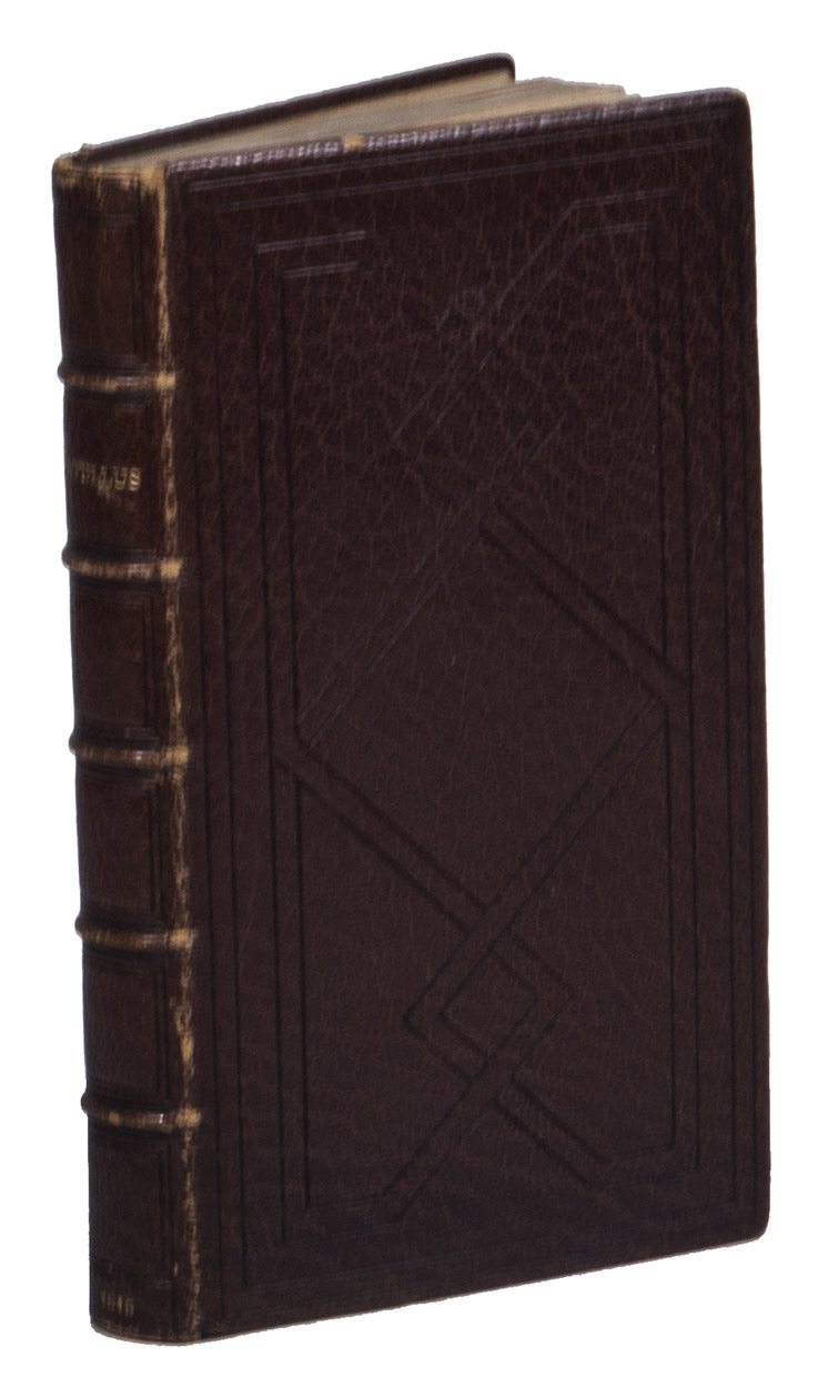 Second Aldine edition of a collection of poems by three of the most important classical poets of the 1st century BCE, writing in the elegiac tradition. The poets Gaius Valerius Catullus (84-55 BCE), Albius Tibullus (55-19 BCE) and Sextus Propertius (50-15 BCE), had a strong preference for writing about intimate and familiar subjects as love, eroticism, rejection and mourning, which sets their lyrical and elegiac poetry apart from the heroic poetry of many other, earlier classical poets who often focused on the epic of heroes. In the present work, the poets express their love and desire for various women, among others "Lesbia" (Catullus), "Delia" (Tibellus) and "Cynthia" (Propertius). he binding is finely executed and the binders stamp gives the initial G of his first name. Fléty records him merely as "Vignal" without first name or initial, but he is presumably Vignal fils, for Devauchelle, III, p. 54, notes that Georges Trautz (1808-1872/79) used the services of Vignal père, an "excellent décorateur". The son clearly deserves to be better known.