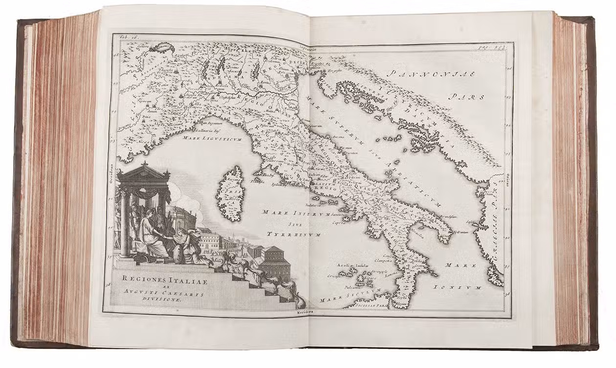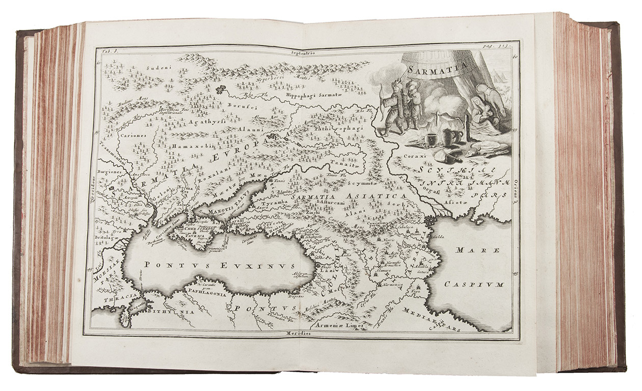 With owner's inscription on flyleaf and title-page. Although the work is slightly browned as usual and contains a few spots and stains, the maps are printed with very crisp impressions; good copy. The binding slightly bumped at the corners and a couple minor spots on the sides, otherwise very good with the tooling very well-preserved. ESTC T144498; cf. Sabin 11655 (1731-1732 ed.); Sandys I, p. 369.