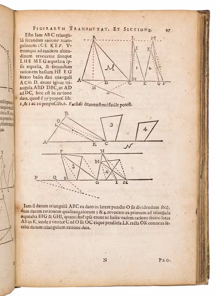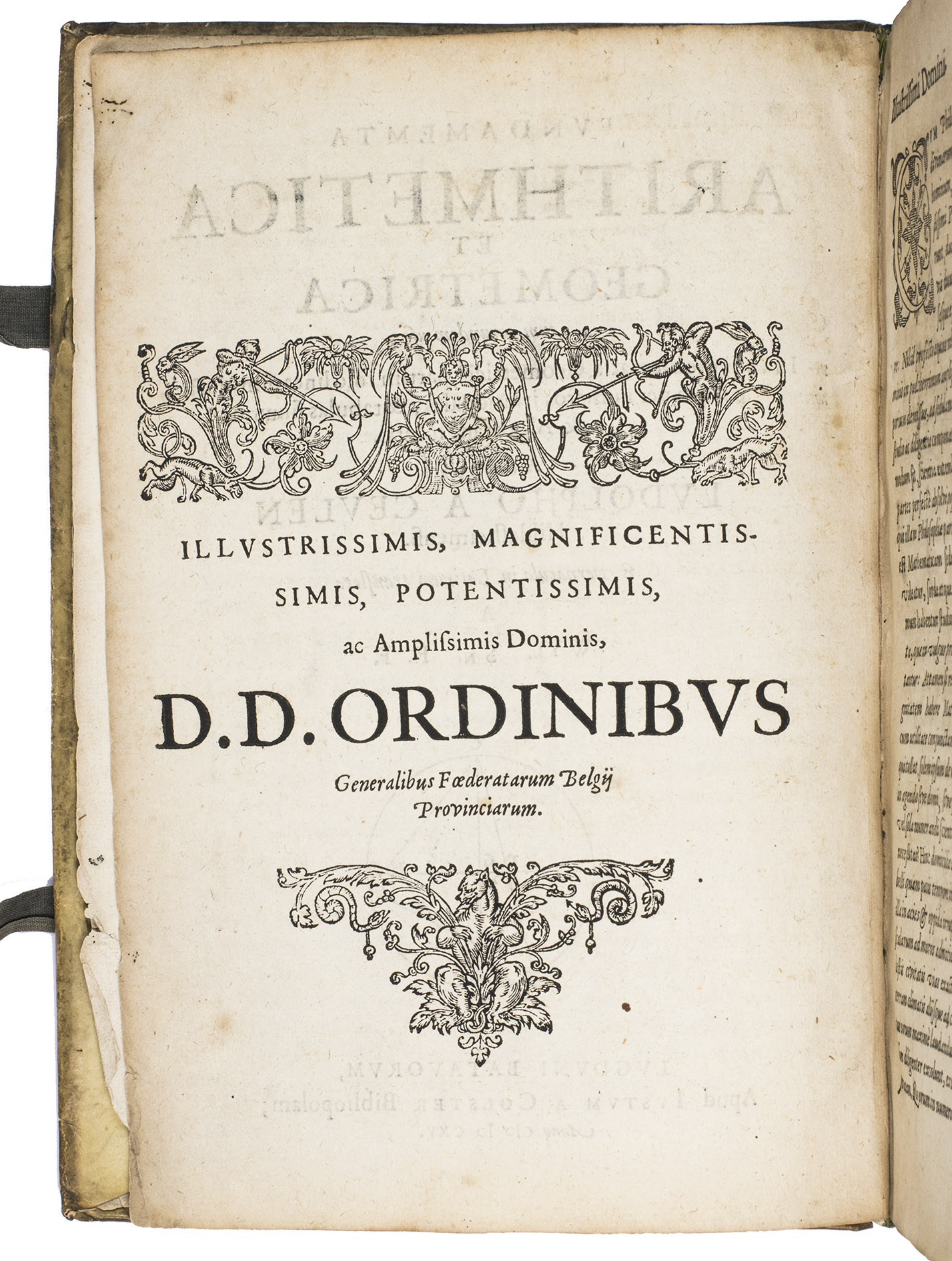 Leiden, Joost van Colster [printed at least in part by Joris Abrahamsz. van der Marsce], 1615. 4to. With numerous woodcut diagrams and other mathematical figures in text. Contemporary vellum. [4], "269" [= 271], [1 blank] pp.