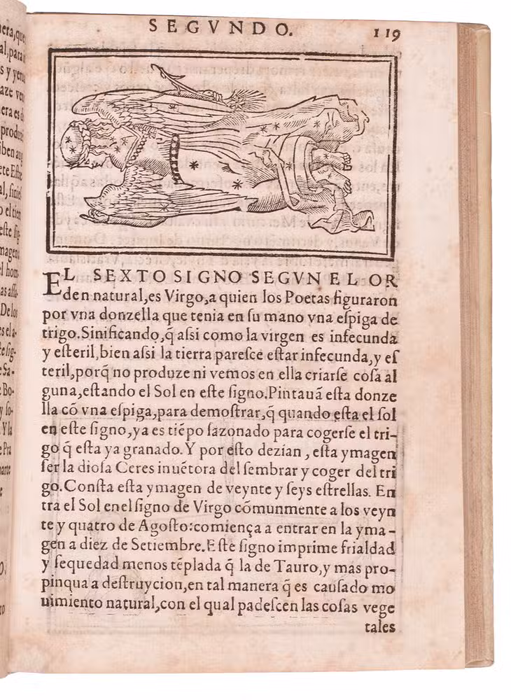 Seventh edition of an important, lavishly illustrated and very popular work on the calendar, the movements of the sun, the planets and the moon, the holidays, the constellations and the signs of the zodiac, by the Spanish chronographer Jérôme de Chaves.
