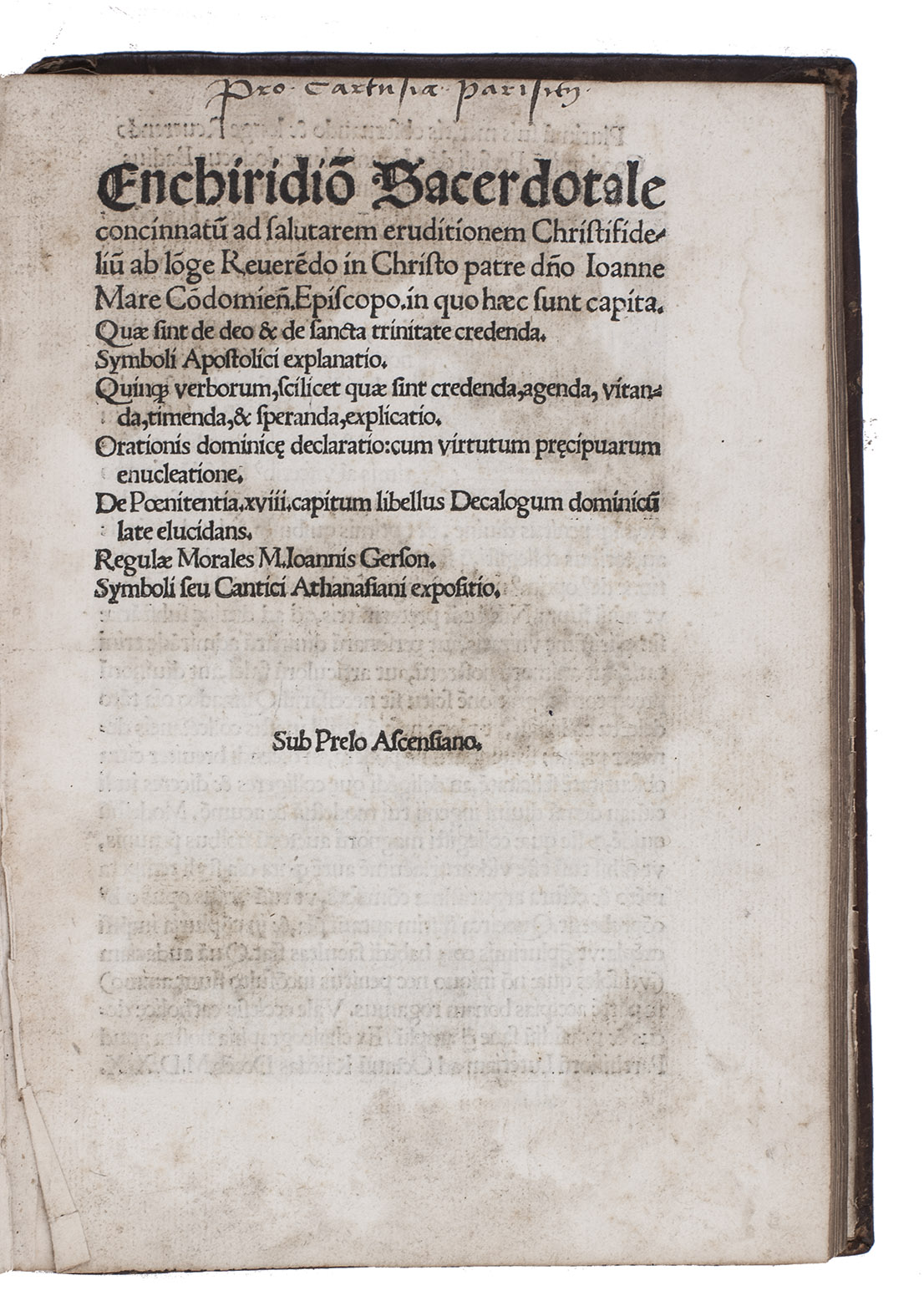 Ad 2: First edition of a manual for priests, compiled and edited by Jean Marre (1436-1521), bishop of Condom.