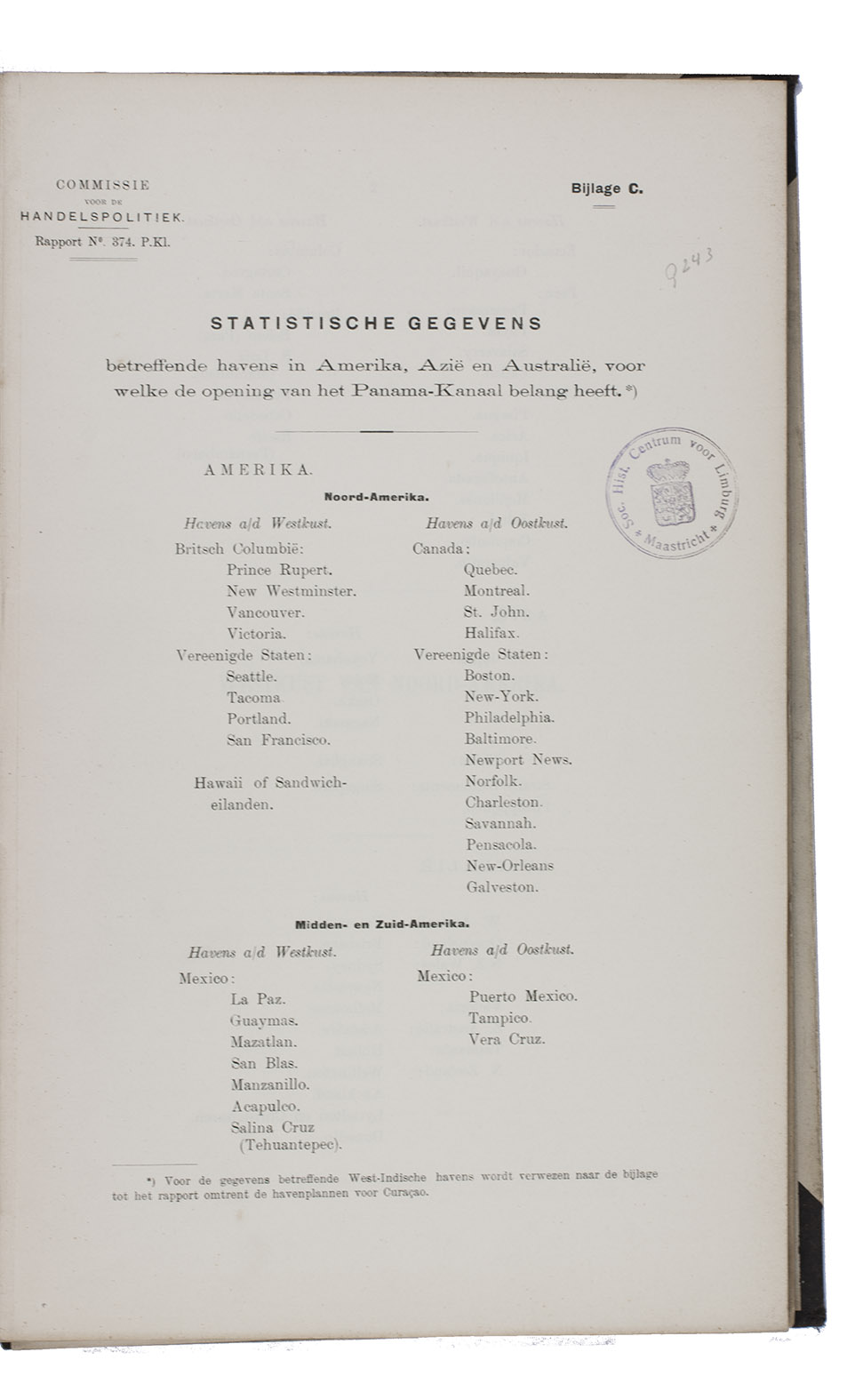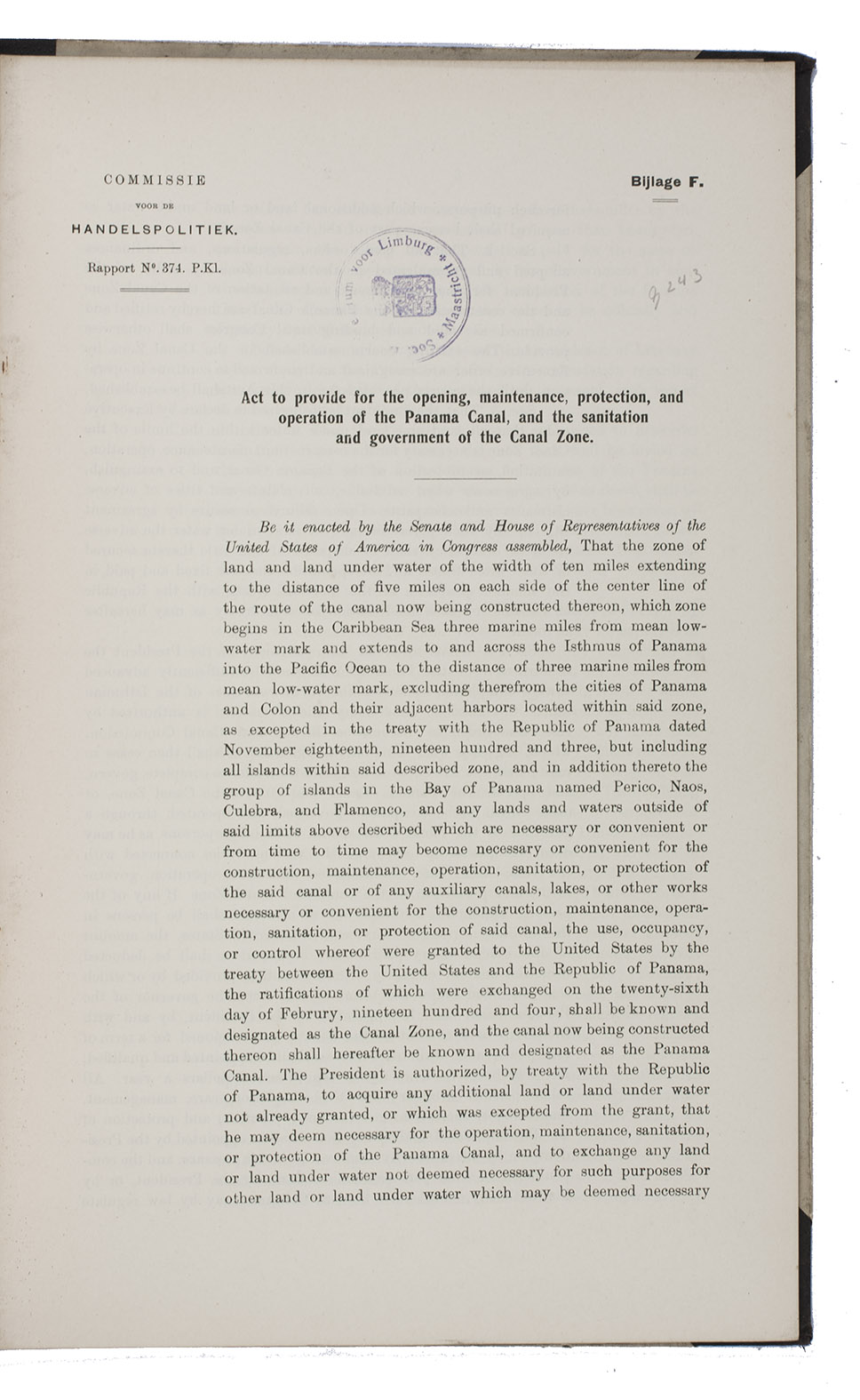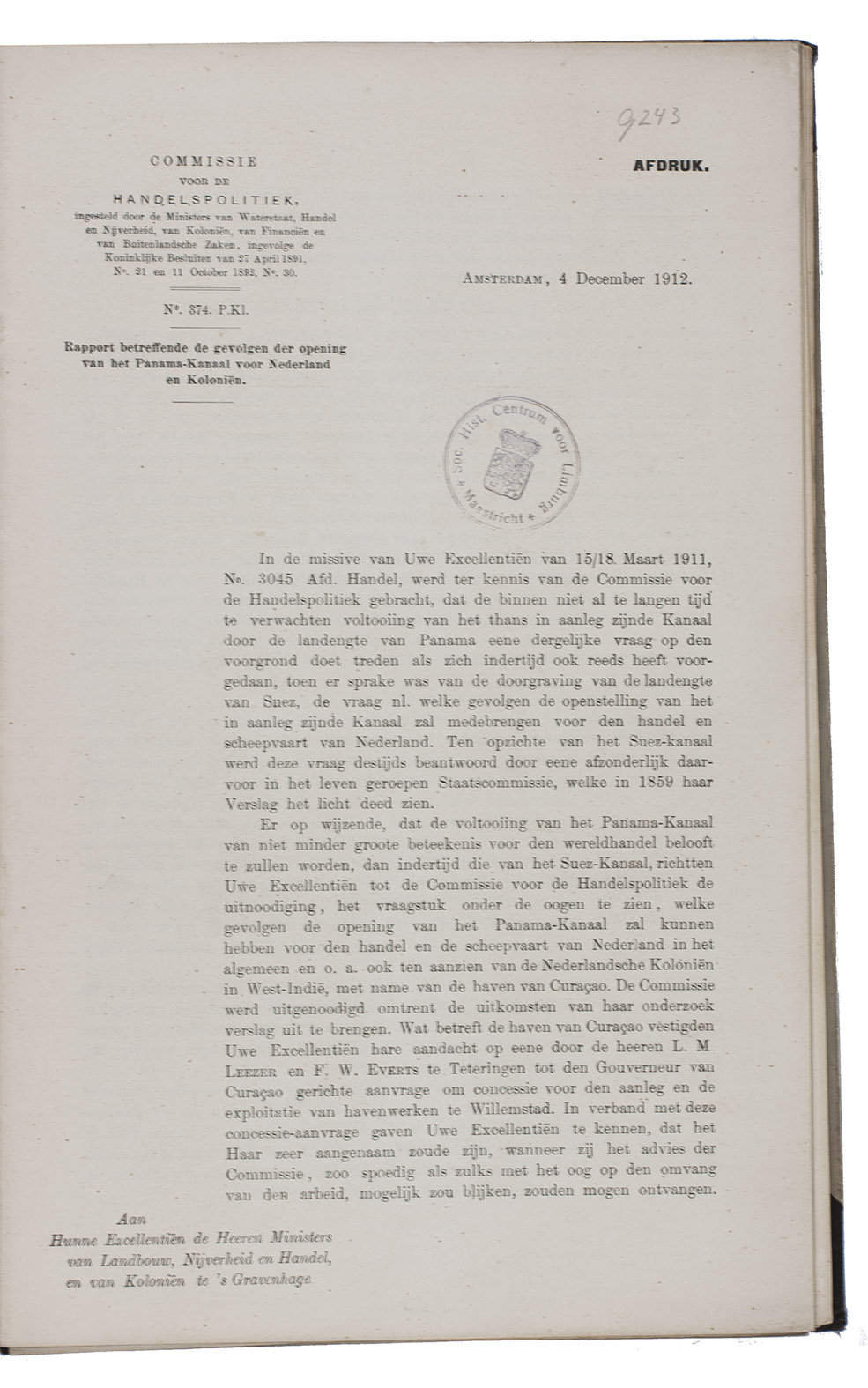 Rapport betreffende de gevolgen der opening van het Panama-kanaal voor Nederland en koloniën.