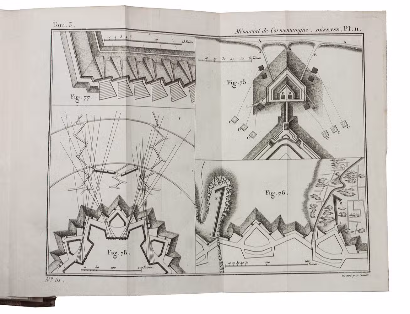With 11 plates somewhat browned, 1 quire foxed, occasional spots, and some minor marginal water stains toward the end of vol. I, but still in good condition. A thorough fortification manual by the most important French fortifications engineer since Vauban, with 55 plates. Jordan 769 vol. I, 770, 768 (not noting the folding tables).