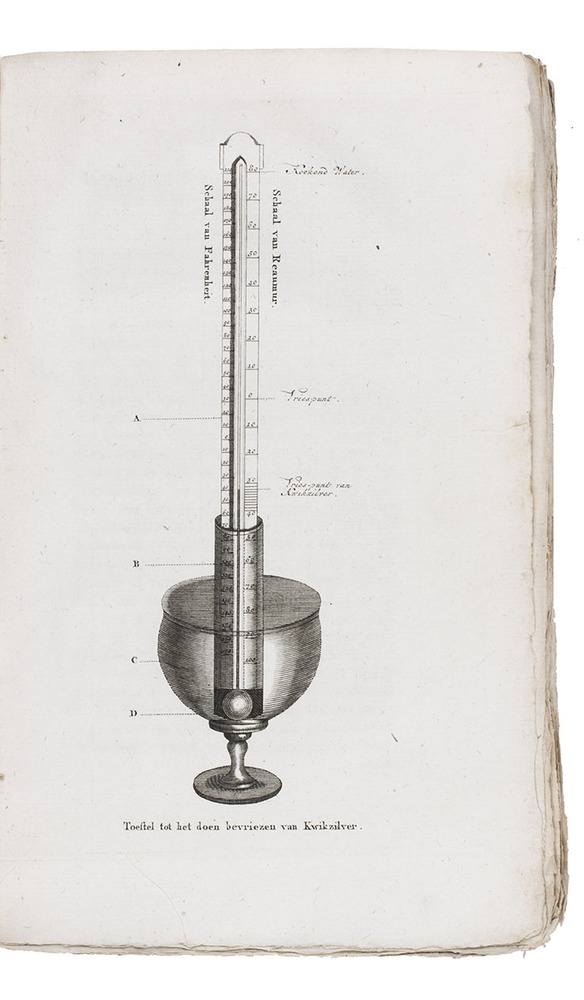 Amsterdam, J. Yntema, 1788-1791. 9 volumes. 8vo. With 1 full-page engraved illustration (of a thermometer) in volume 9. Contemporary stiff paper wrappers.