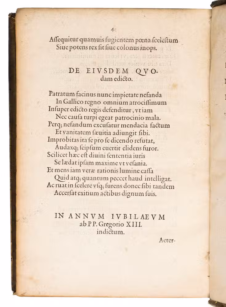 Ad 2: Second augmented edition of Pibrac's (1529-1584) apologetic narrative of the St. Bartholomew's Day Massacre of 1572. The first edition appeared earlier in 1573 but without the second part (pp. 47-95), printed here for the first time. This substantial and most interesting addition consists of the "Responsio" attributed to Joachim Camerarius who is believed to hide under the pseudonym Stanislaus Elvidius.