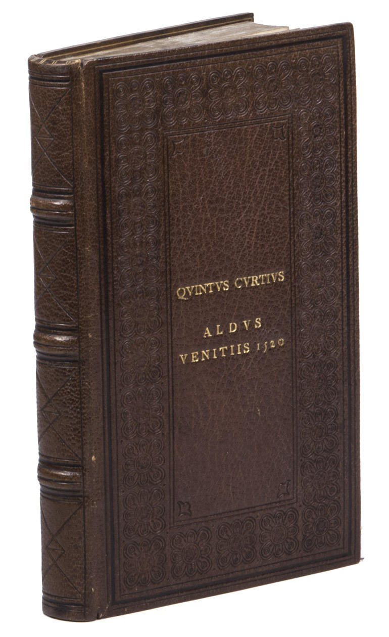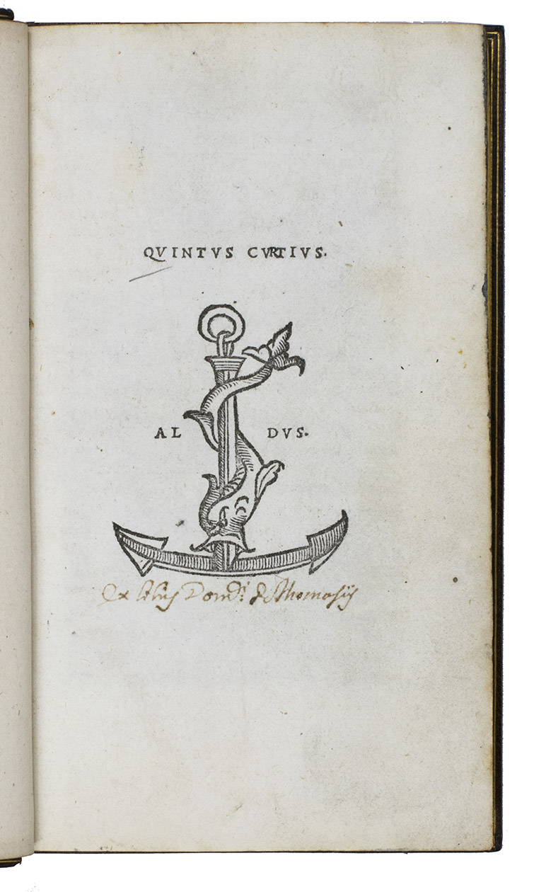 First and only Aldine edition, in the original Latin, of all eight surviving books of Quintus Curtius Rufus's history of Alexander the Great, here with the title-page in its first setting, omitting the "r" in "Curtius", which has been corrected by stamping an R between the U and T. We know almost nothing about Quintus Curtius Rufus with certainty. Literary parallels and linguistic and stylistic evidence suggest he lived in the Roman Empire in the 1st century CE. Curtius Rufus is particularly known for the present work, the only extant extensive Latin account of Alexander the Great written during Roman antiquity and a major source of information about him for Rufuss contemporaries, but also for scholars in the Middle Ages and the early Renaissance.