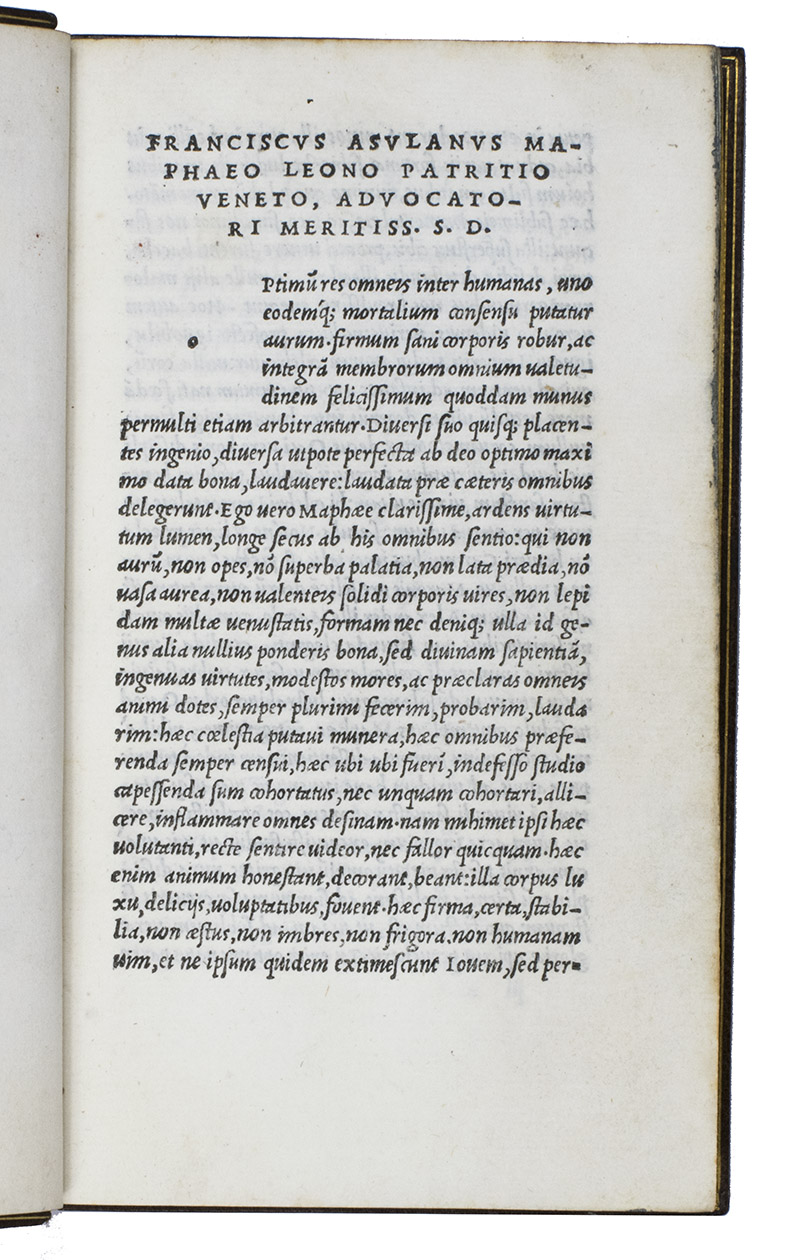 With a 17th-century owner's inscription in brown ink on the title-page ("ex libris Dom: de Thomasus") with some marginal annotations throughout in the same hand. With the bookplate on the front paste-down of the French physician Henri Guéneau de Mussy (1814-1892), whose family often held positions as court physicians to the family of the Duc dOrléans,. Henri Guéneau de Mussy was the court physician of Louis Philippe I (1773-1850), King of France from 1830 to his 1848 exile, and was also to gain a high reputation in London after Louis Philippe I died. With some small spots and minor stains throughout, but overall in very good condition, the binding fine. Adams C3120; BM STC Italian, p. 207; Ahmanson-Murphy 164; EDIT16 13880; Renouard 88:1; USTC 825121.