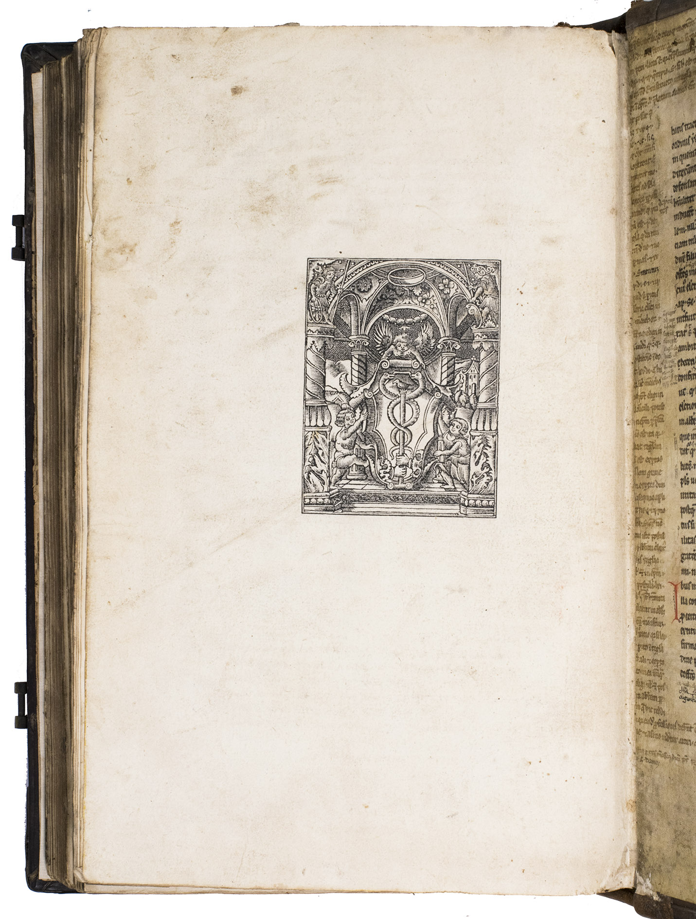 With manuscript waste pastedowns, three stamps of the Roman Catholic Saint Maria-Magdalena church in Zaandam on the title page, occasionally some (near contemporary?) manuscript annotations in the margins and some of the text has been underlined. The work has been re-backed, lacking the backstrip of the original binding, the edges of the leather around both boards is slightly damaged revealing the wooden boards below, the spine is somewhat rubbed. The edges of the first and last few leaves are slightly frayed, some occasional water staining in the fore-edge margin (not affecting the text), some slight staining and dust soiling throughout. Otherwise in good condition. Allen 1000; De Reuck 416; Huizinga VI p. 148; USTC 679667; Vander Haeghen II, 23; VD 16 C 6508; not in Adams; Bezzel; BM STC German.