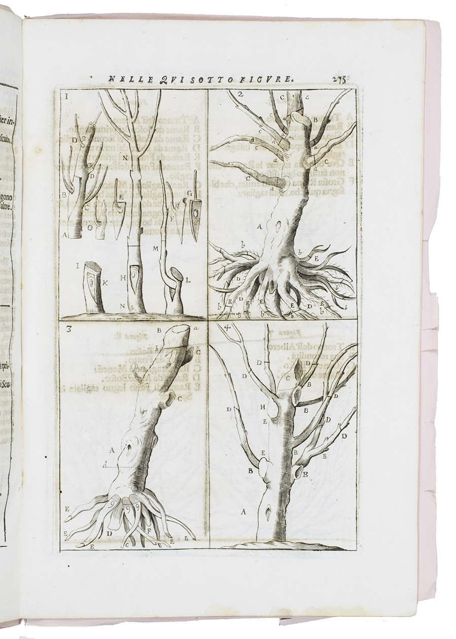 In very good condition and with generous margins, with only some minor water stains at the foot, not approaching the text or illustrations. An extremely rare Italian translation of an early treatise on the grafting of fruit trees. Cf. Arnold Arboretum I, p. 183; Bradley III, p. 171; Hunt 395 & 455; for Dahuron: NBG XII, col. 787.
