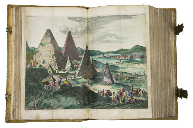 Dapper's attention was mainly drawn to the Islamic North of Africa, with extensive and thorough descriptions of the area between Morocco and Egypt (with a magnificent illustration of pyramids) and the Ethiopian Empire (Abyssinia). Its maps of the whole of Africa, Egypt and Ethiopia include the Arabian peninsula as far as the Persian Gulf and provide a detailed display of the Red Sea. A highlight is the impressive double-page plate with a view of a Hajj pilgrim caravan from Cairo to Mecca
