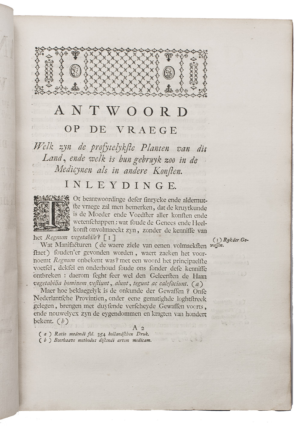 Antwoord op de vraege welk zyn de profytelykste planten van dit land, ende welk is hun gebruyk zoo in de medicynen als in andere konsten.