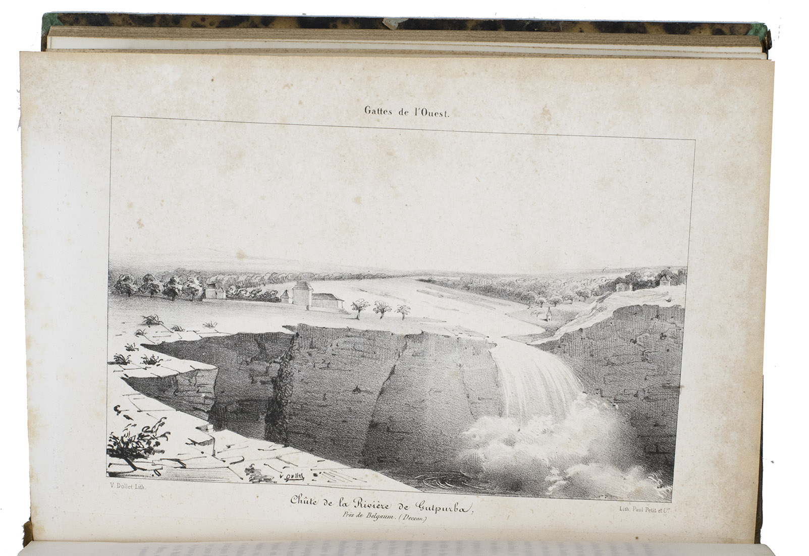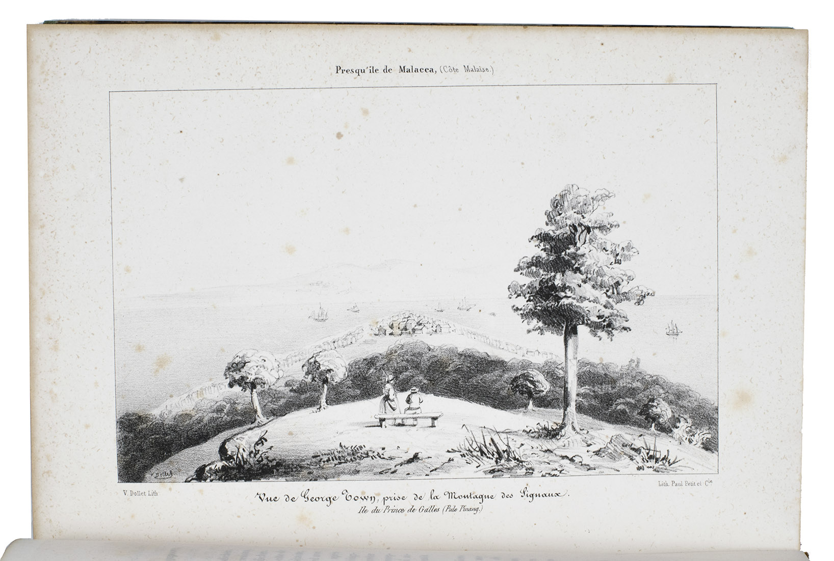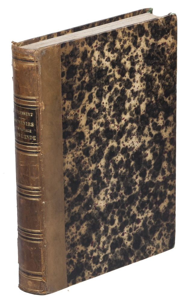 First edition of the travel account of the explorer and naturalist Adolphe François Delesset (1809- 1869) who accompanied Perrotet on his journey to India and Southeast Asia, dedicated to his uncle Baron Benjamin Delesset . During five years (1834-39) he collected several new species of plants and animals including the Wynaad laughing thrush which he collected on the slopes of the Nilgiris, which Thomas C. Jerdon named Garrulax delesserti in his honour. He travelled through Mauritius, Reunion Island, Penang, Pondicherry, Malay Peninsula, Singapore, Java, Calcutta, Bengal, Bombay and Madras, returning on 30 April 1839.