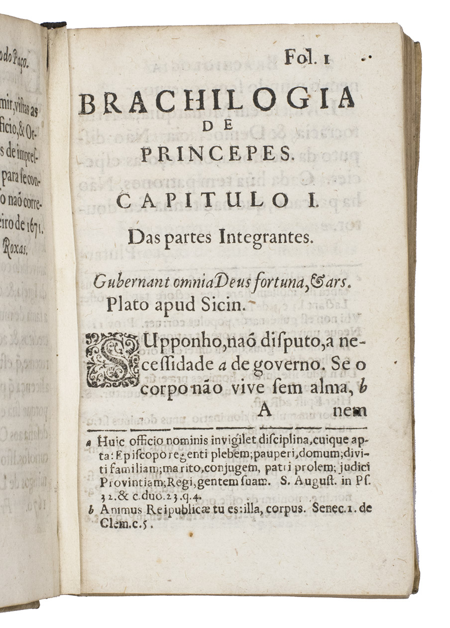 Lisbon, António Craesbeeck de Mello, printer to "Sua Alteza" [= Prince Regent and future King Dom Pedro II], 1671. Small 8vo (15 x 9.5 cm). With 2 woodcut decorated initials (2 series). Contemporary sheepskin parchment without boards. [16], 299, [1 blank], [3], [1 blank] pp.