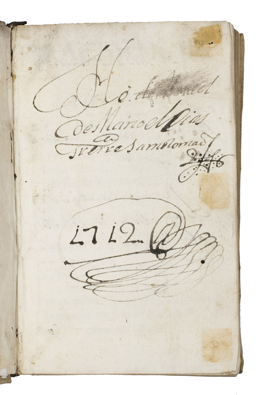 With manuscript annotations on the title-page and first free end-leaf, including 17th- and early 18th-century owners inscriptions: "Araujo 200"[?], "N.[?] Lucas de Slenezes[?]" and "He.[?] do ...ed des Manoel Dias ... 1712". With a small wormhole in the lower fore-edge margin, occasionally slightly affecting a letter of the text in the first third (a thinner worm trail in the upper outside corner rarely touches the text), a minor water stain at the head of quire P and a small yellow stain on S8v, but still in very good condition. The binding also shows a few small worm holes, and half of the upper headband is lost, but it remains in good condition. Innocêncio III, 238; Porbase (2 copies); WorldCat 11529534, 433447739 (7 copies).