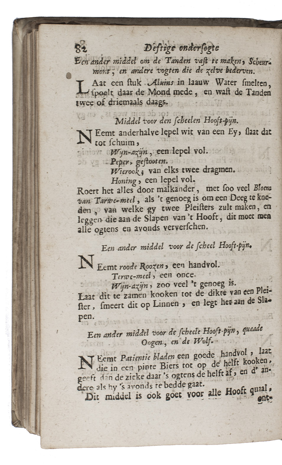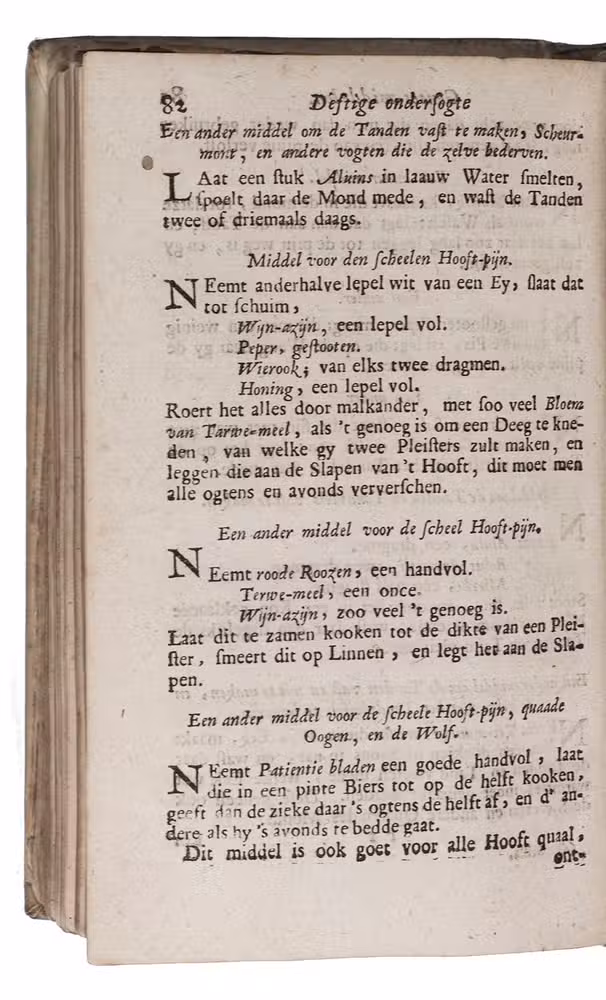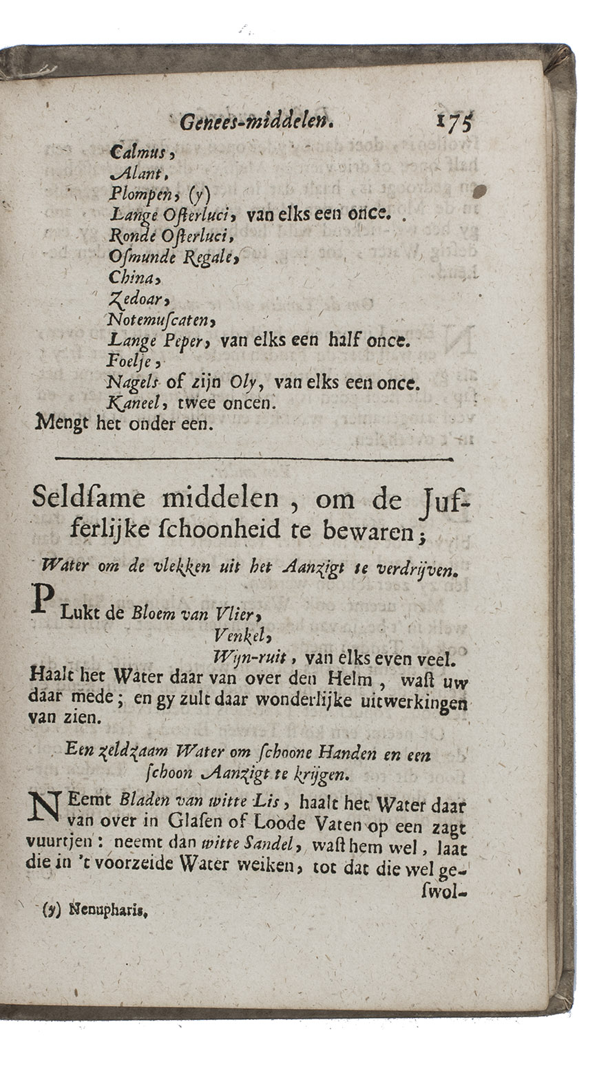 Rare 3rd edition of the Dutch translation of a popular work on medicinal herbs, plants, minerals etc. with recipes. It starts with the Theatrum sympateticum, divided into two parts, by the English diplomat and philosopher Kenelm Digby (1603-1665). The first contains notes on medicinal herbs and plants curing everyday ailments, the second explains how to make the "powder of sympathy", "a potion which allowed the healing of the wound by treating the weapon which caused it" (MacDonald), and includes extracts from works by Papinius and Sylvester Rattrat. The powder of sympathy could also be put on a bandage that had been in contact with the wound, without ever touching the wound. Digbys work is followed by 't Groote licht der natuurkunde by Athanasius Kircher (1602-1680), a work on magnetic forces and the influence of the moon, sun and planets on the earth. The book closes with extracts from Digby's memoirs containing recipes for "new" medicines, including mostly household and cosmetic recipes, like face powder for women and water to whiten teeth. The first Dutch edition was published in 1681.