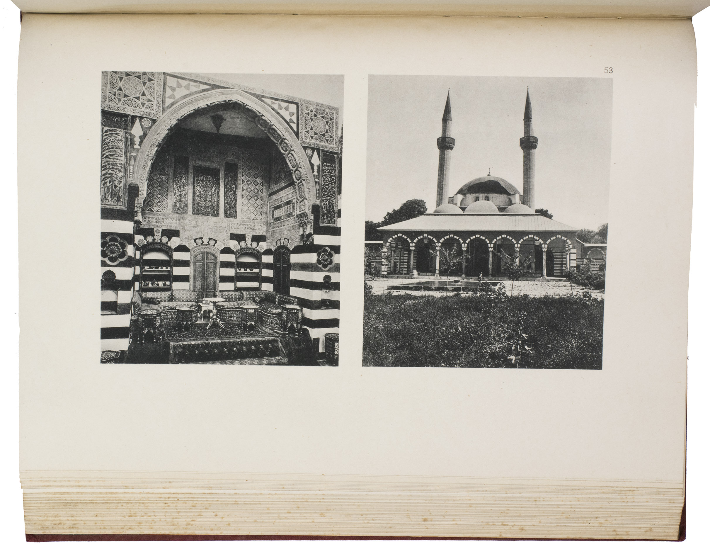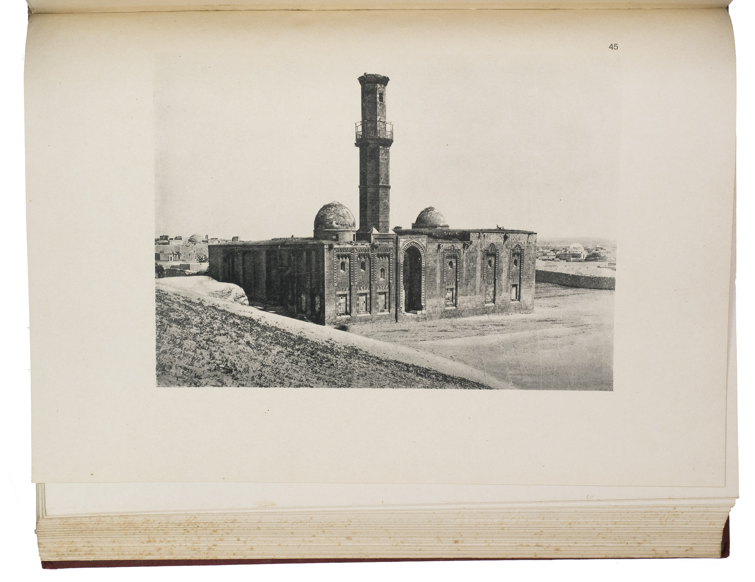 Berlin, Georg Reimer, 1918. Folio (34.5 x 24 cm). WIth 100 plates with 143 reproductions of photographs. Original red publisher's cloth, with the title in Arabic and German on the front board. 10 pp., 100 ll.