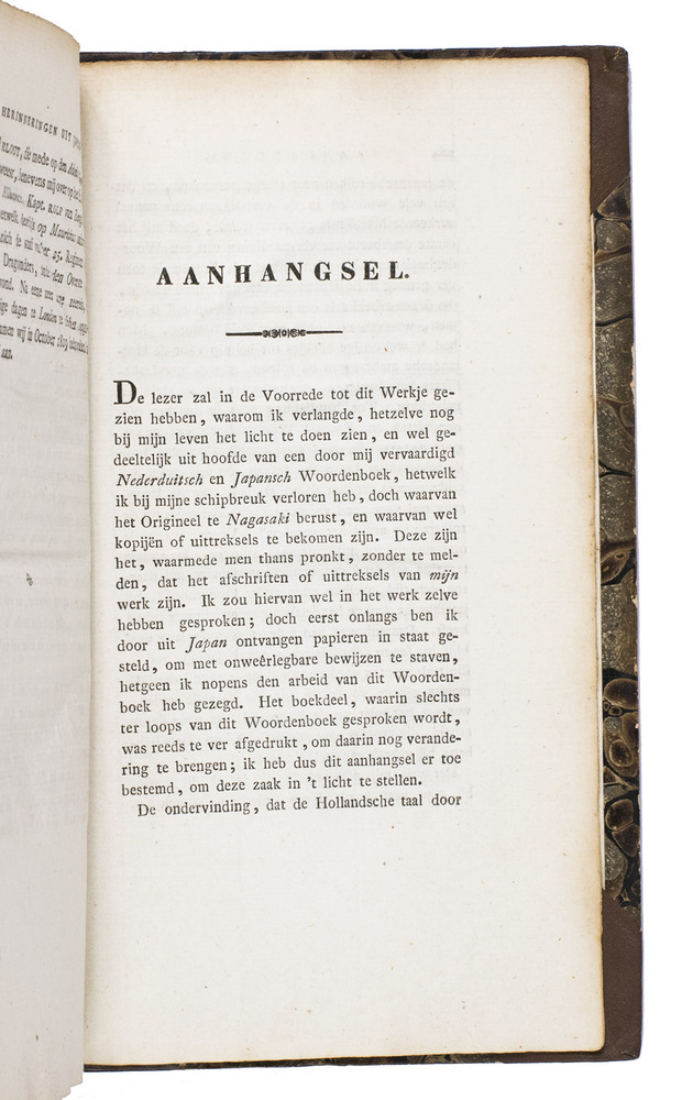 With a manuscript dedication by the author on the recto of the first free flyleaf, in pencil, dated 1834. Overall good condition. Tiele 318; Cordier, Japonica, 488; Alt Japan Katalog 422.